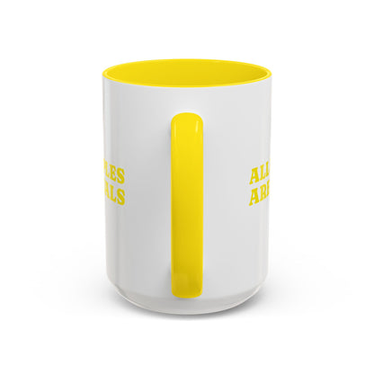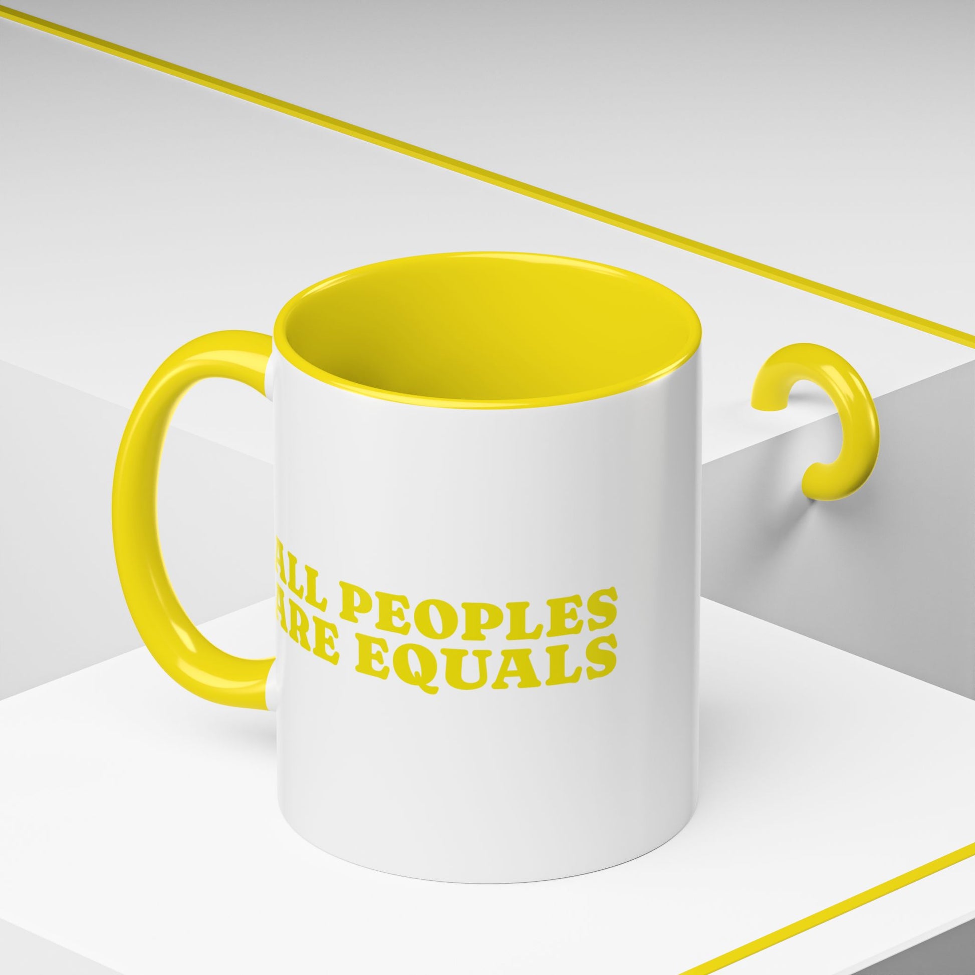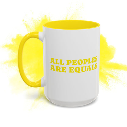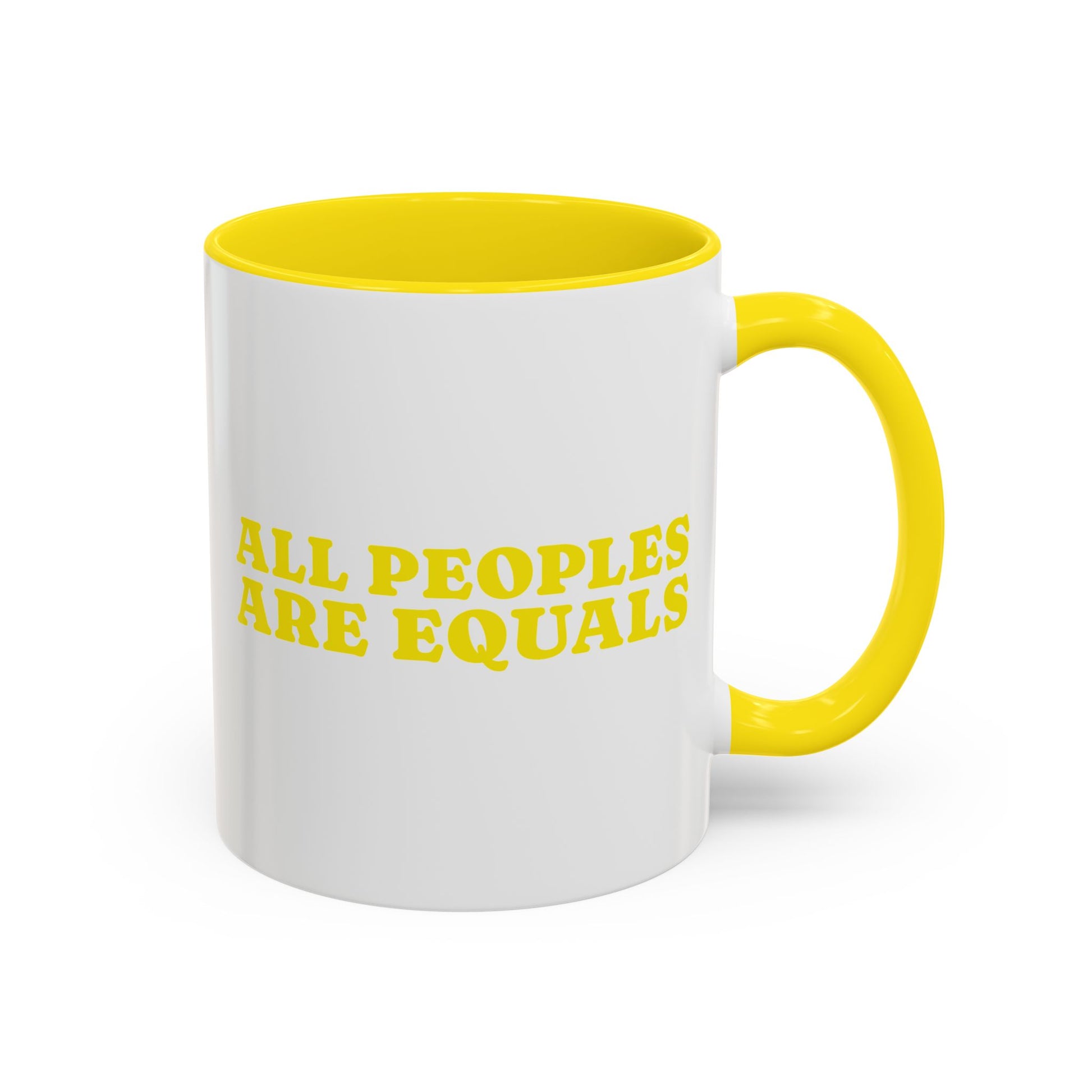 All People Are Equals Yellow Handle Ceramic Mug (11, 15oz)
