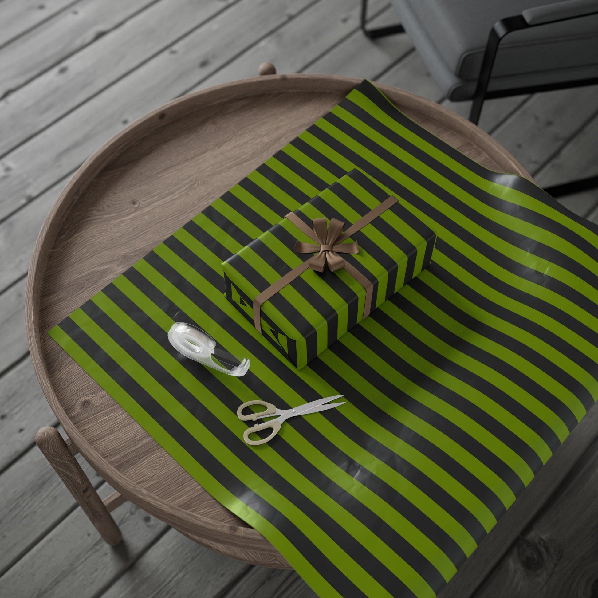 Avocado Green Striped Wrapping Paper Roll (3 sizes)