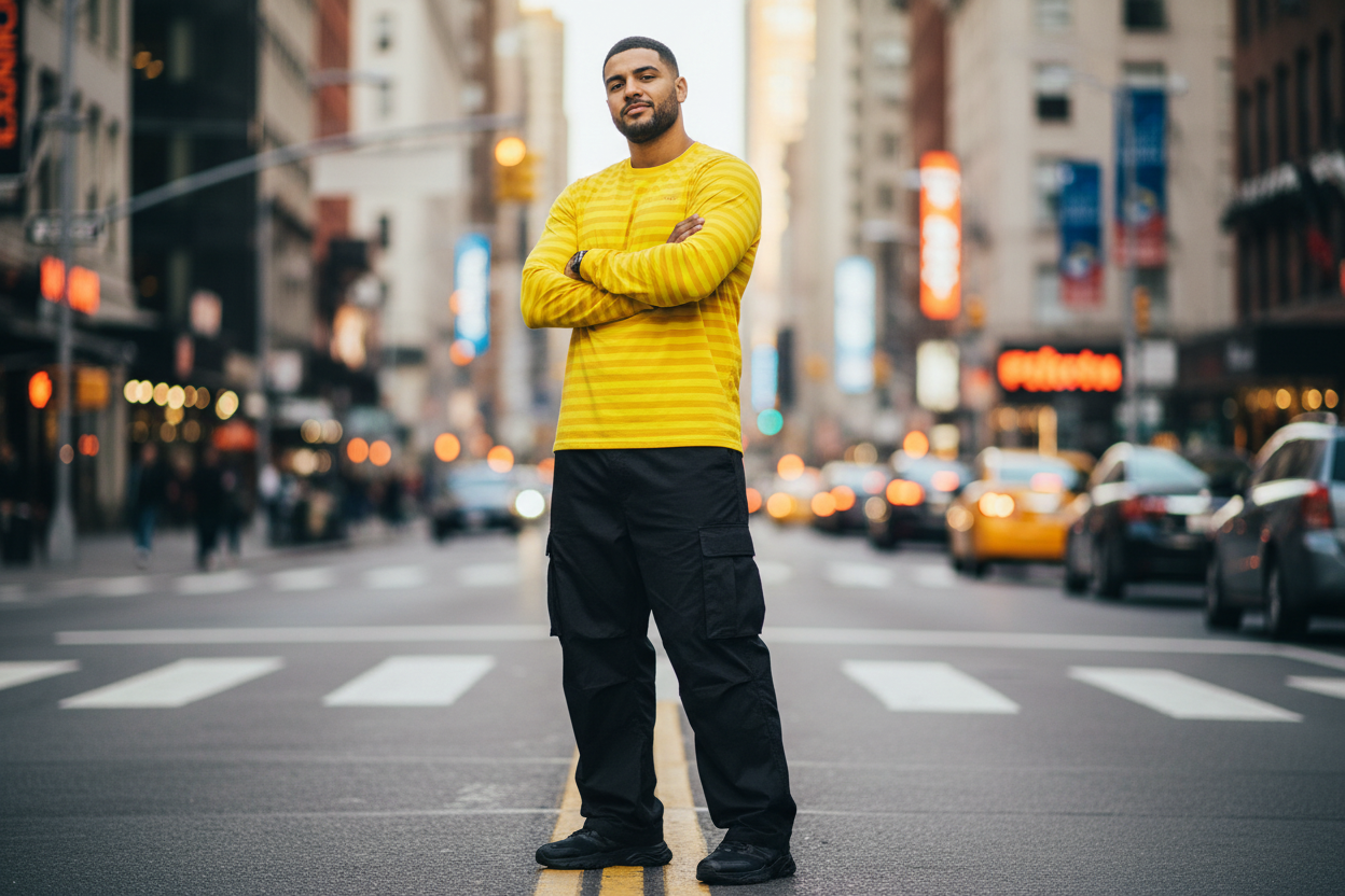Citron Yellow Striped Men's Long Sleeve Shirt
