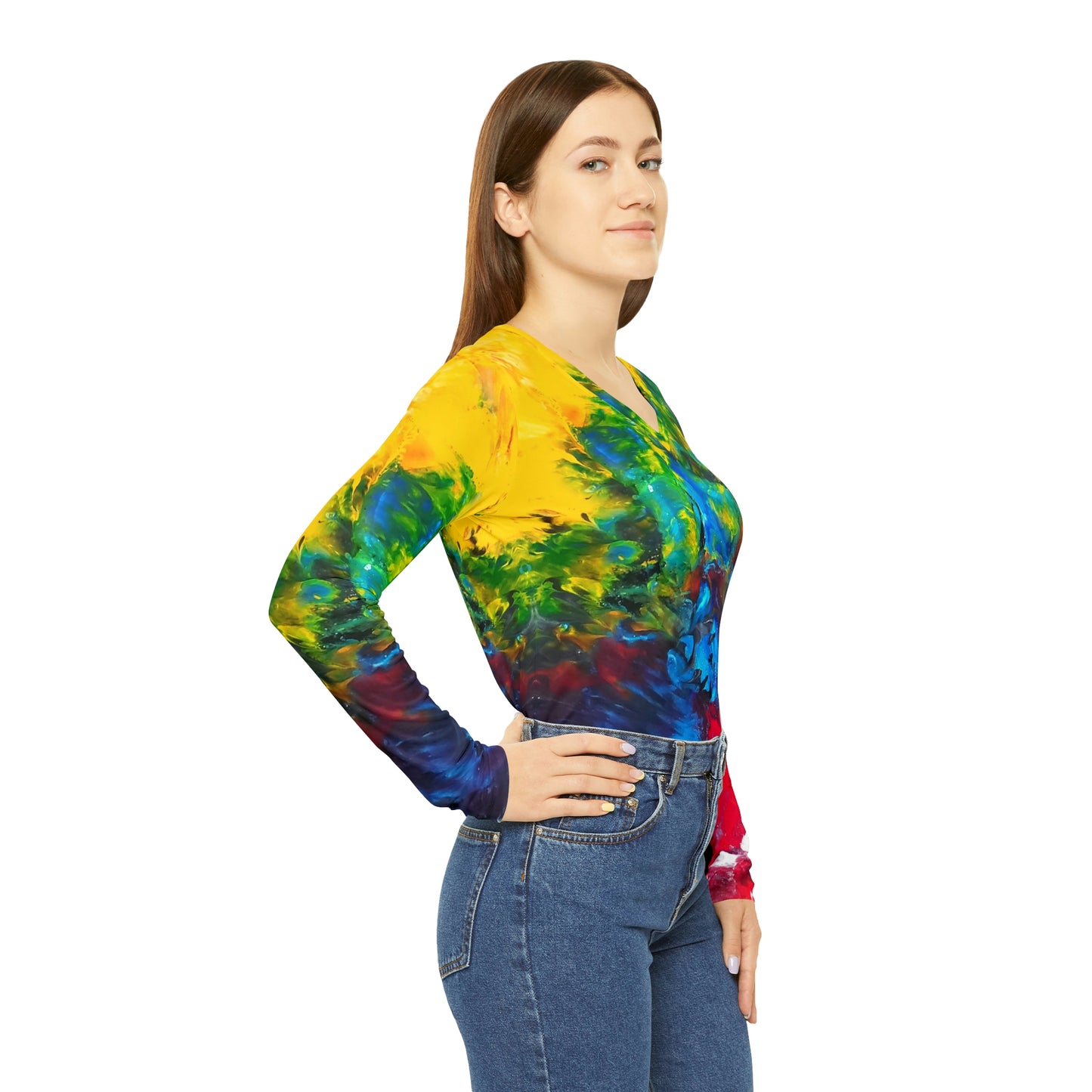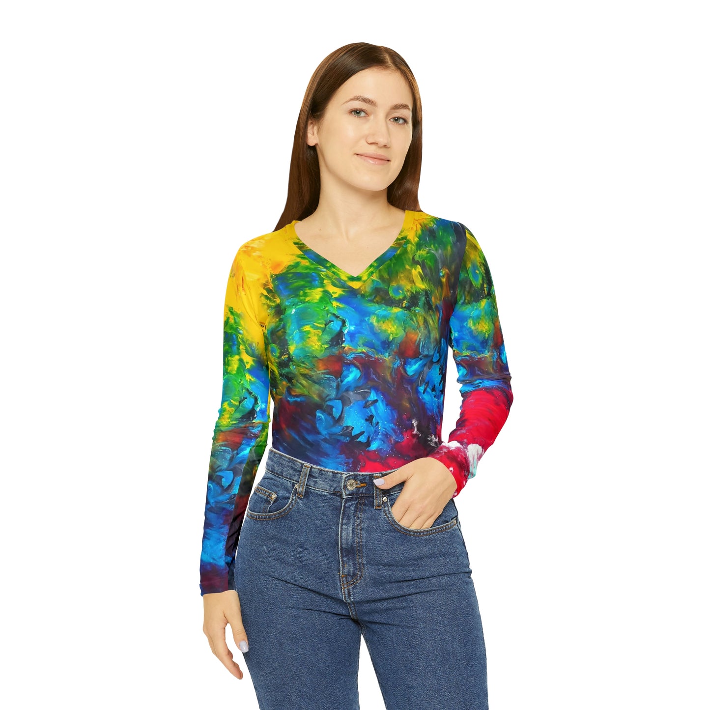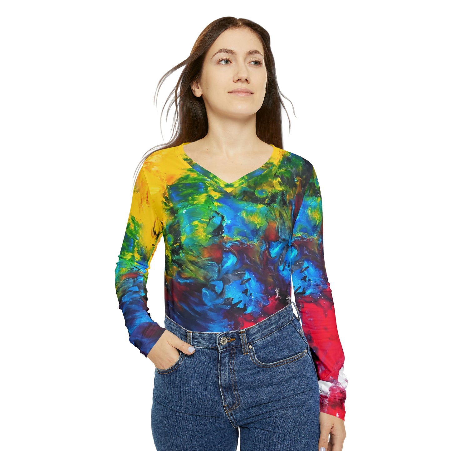 Colorful Paint Waves Women's Long Sleeve V-neck Shirt