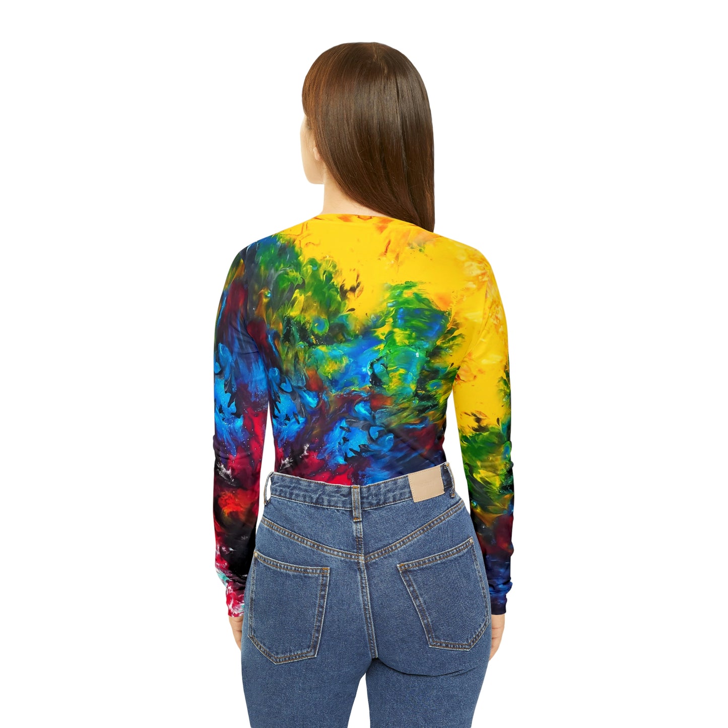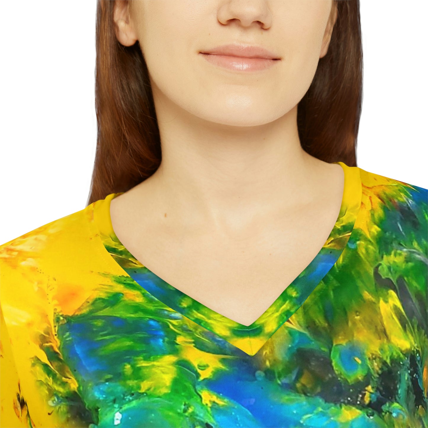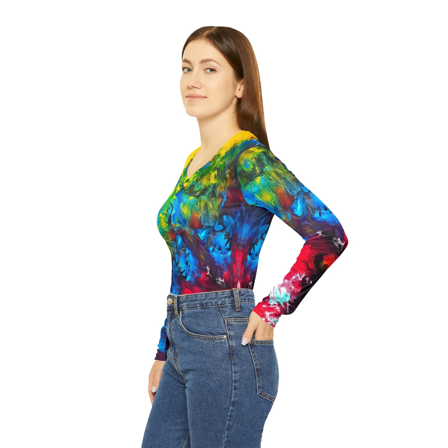 Colorful Paint Waves Women's Long Sleeve V-neck Shirt