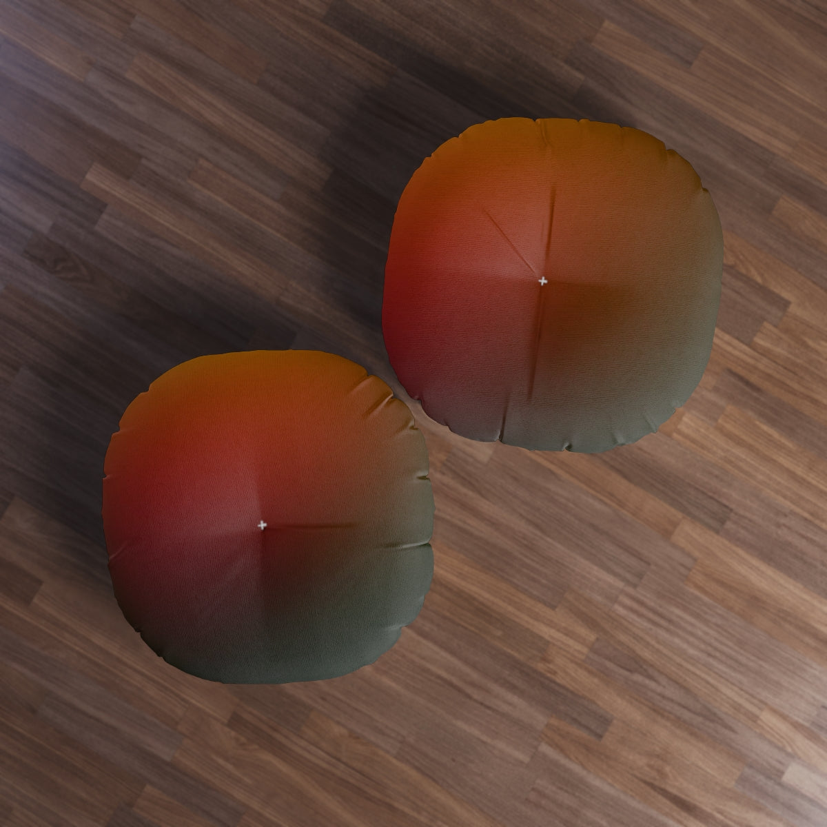 This large round floor pillow is big and comfy and stylish, and perfect for your floor. The pillow has a white center stitch to create tufting.