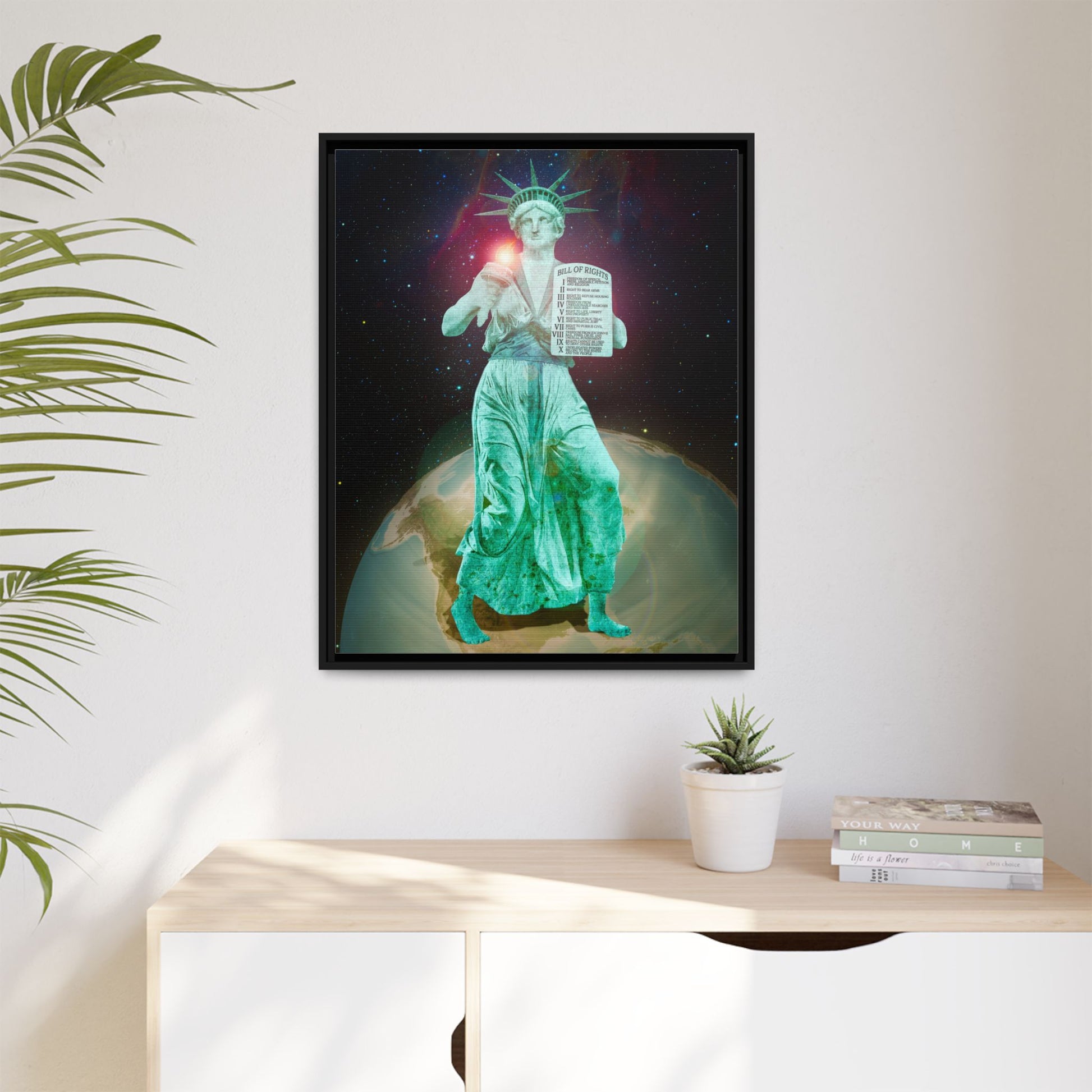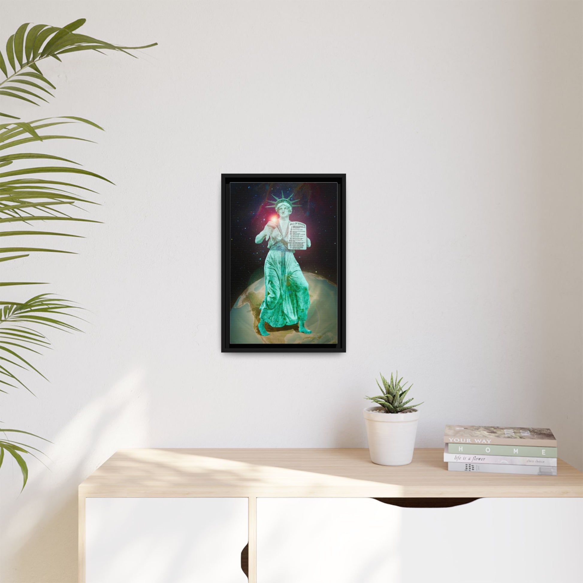 Divine Lady Liberty Framed Canvas Print | Surreal Art