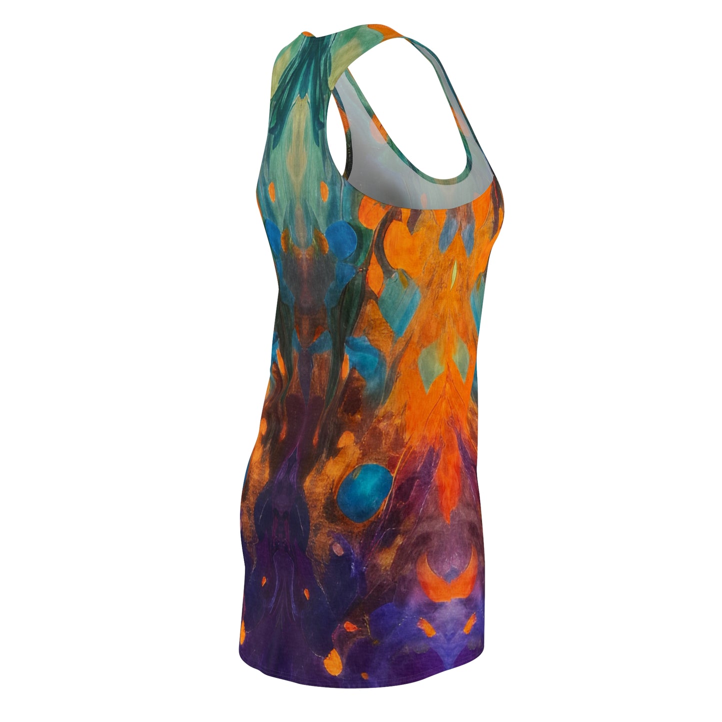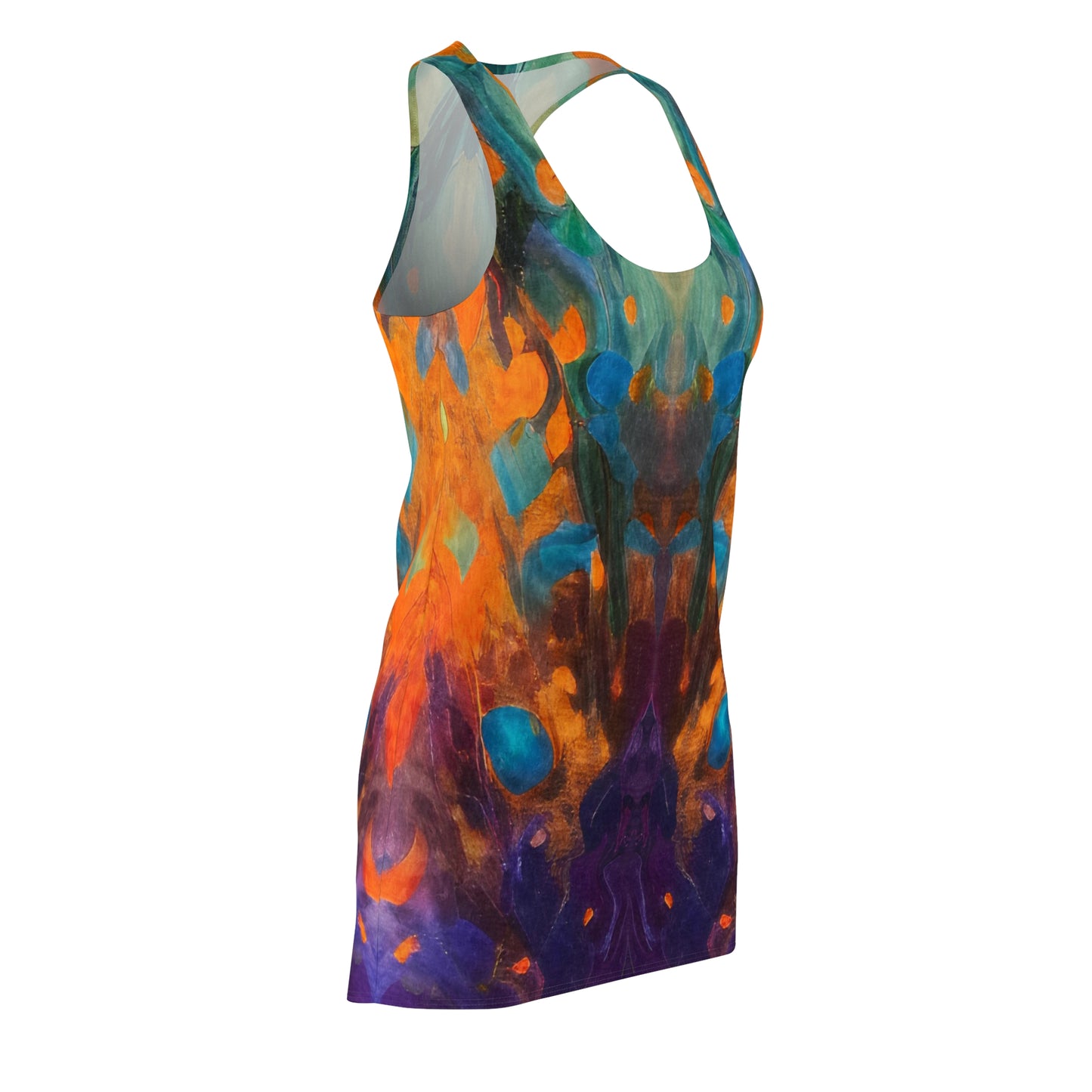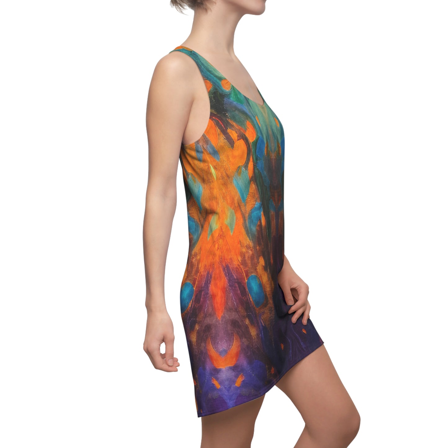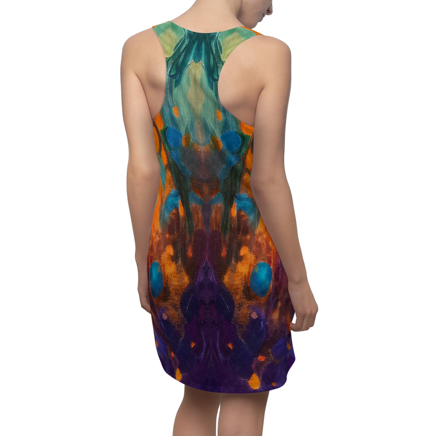 This dress is flattering for all, with its vibrant design. A feminine and stylish, yet really comfortable dress. This high quality racerback dress is appealing from every angle.
