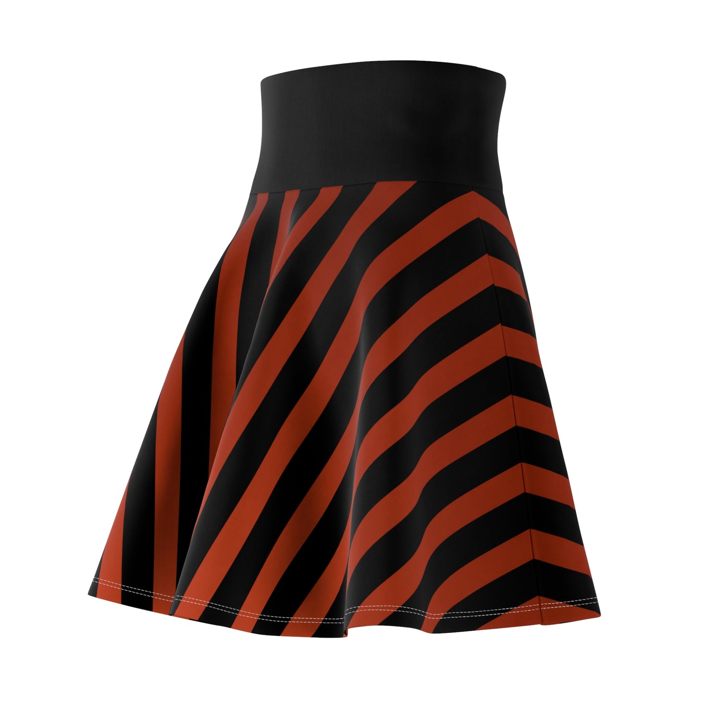 Earthy Red + Black Striped Women's Flowy Skirt