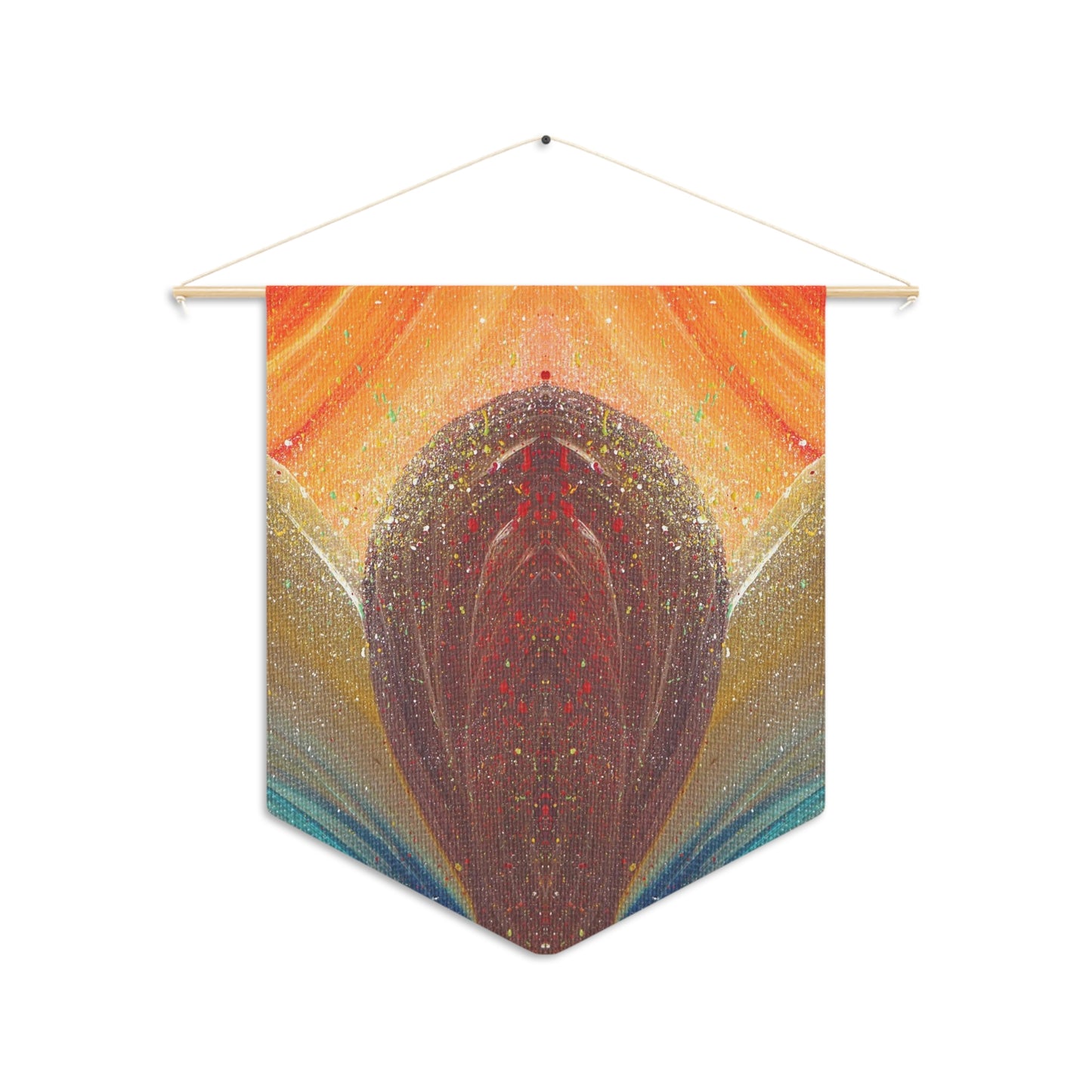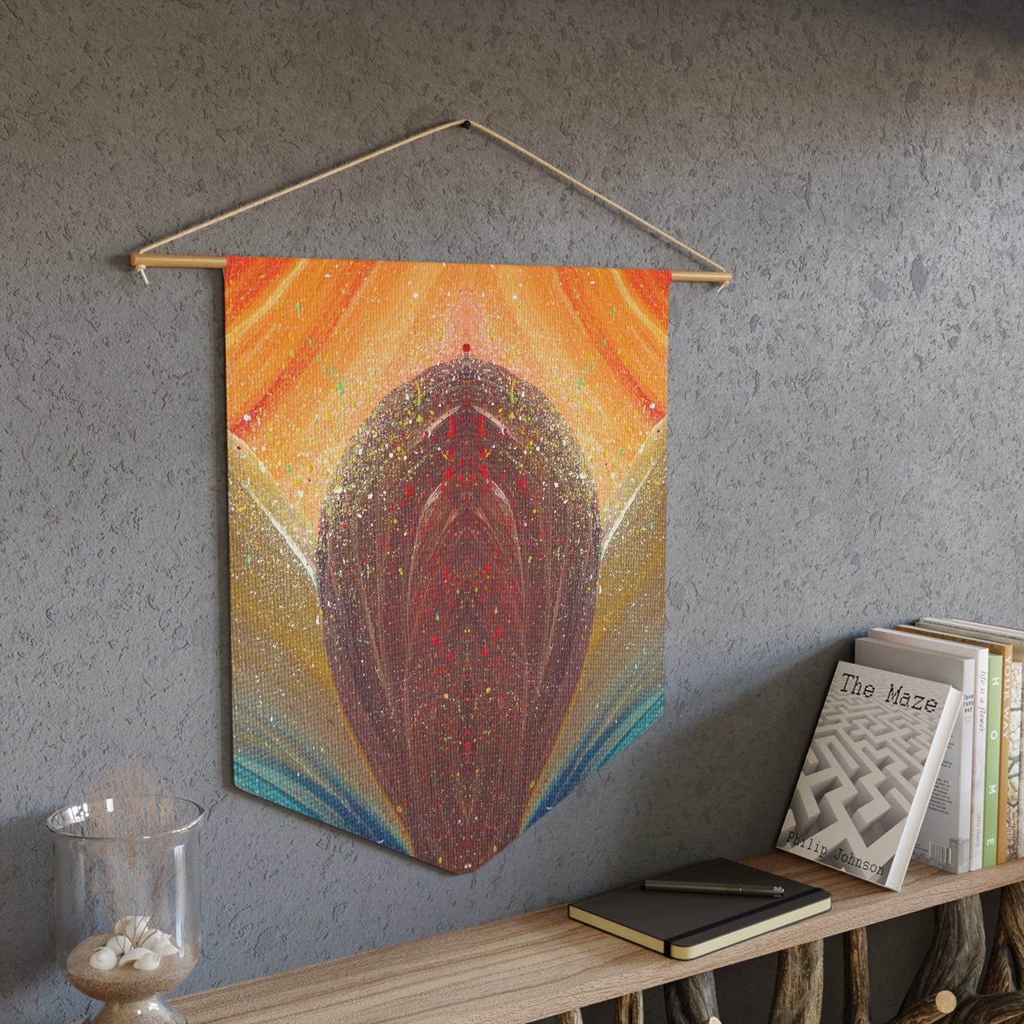 Each tapestry comes with a wooden dowel and twine frame for simple hanging, and is 18 inches wide by 21 inches long. These are lightweight and long-lasting poly-twill tapestries, each featuring unique and vibrant artwork.