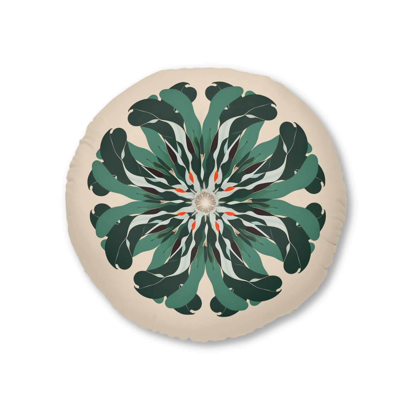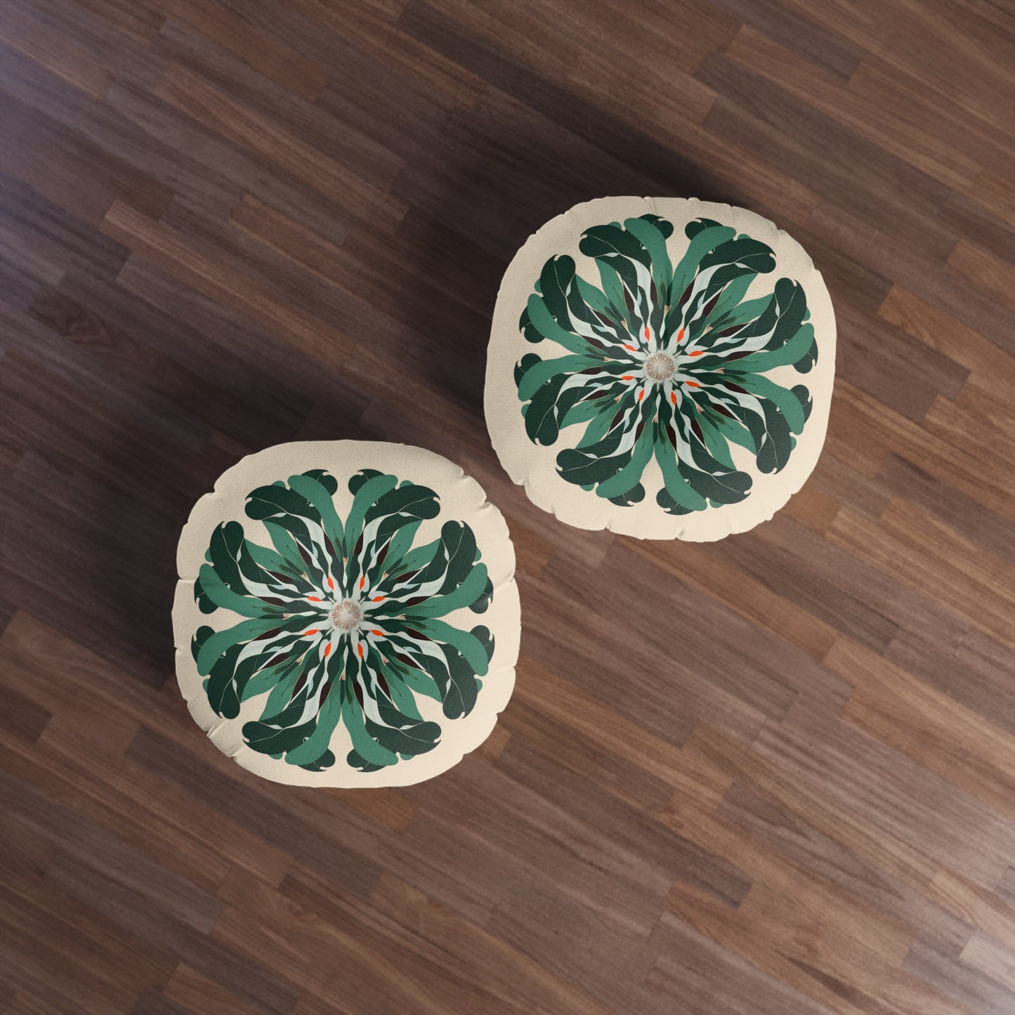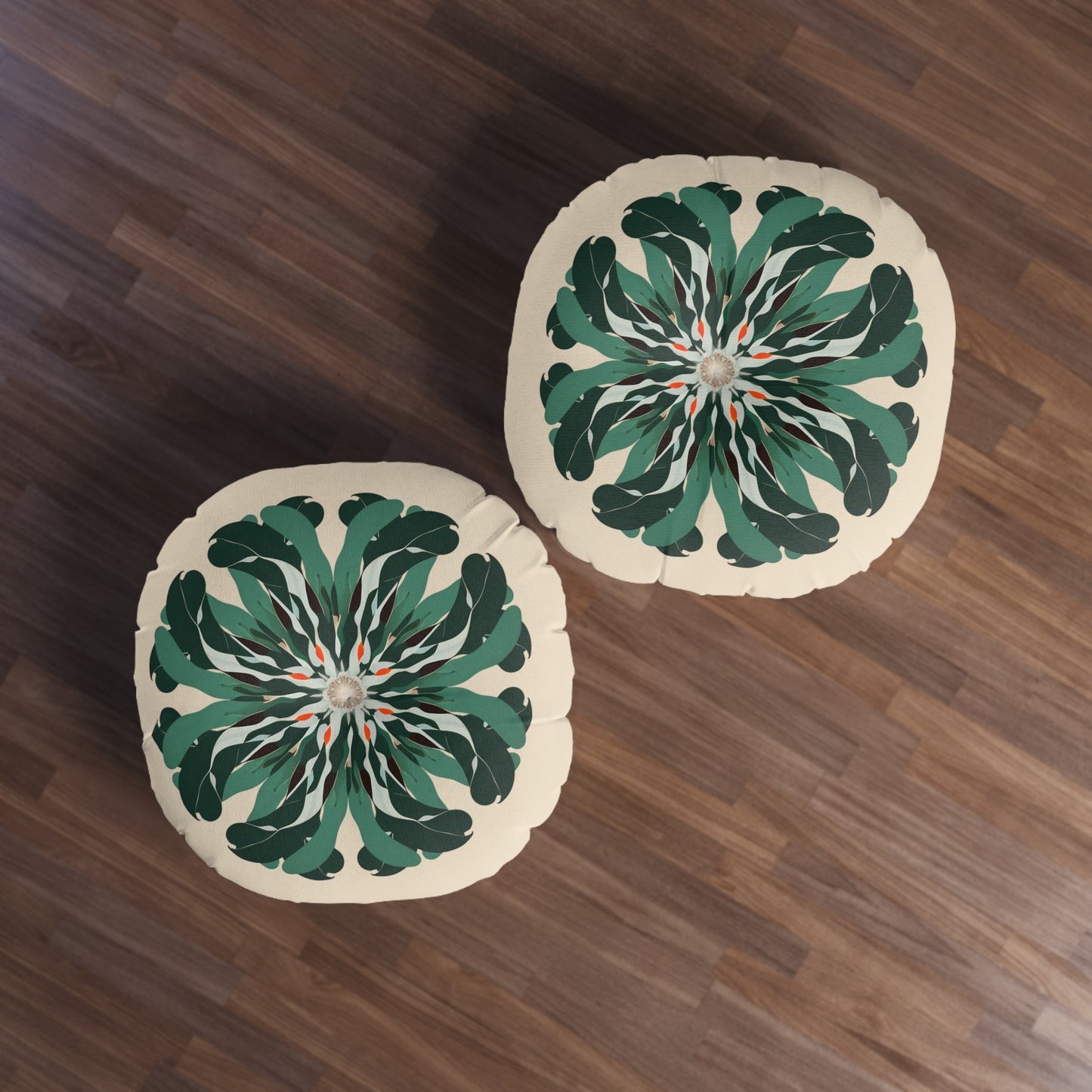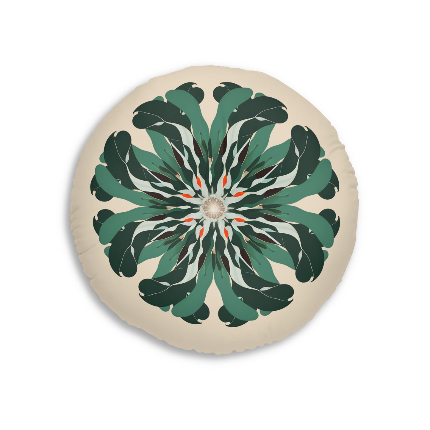 This large round floor pillow is big and comfy and stylish, and perfect for your floor. The pillow has a white center stitch to create tufting.