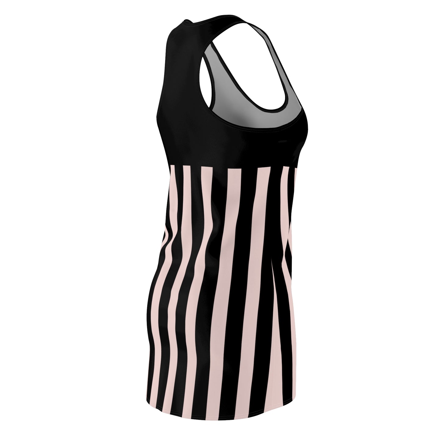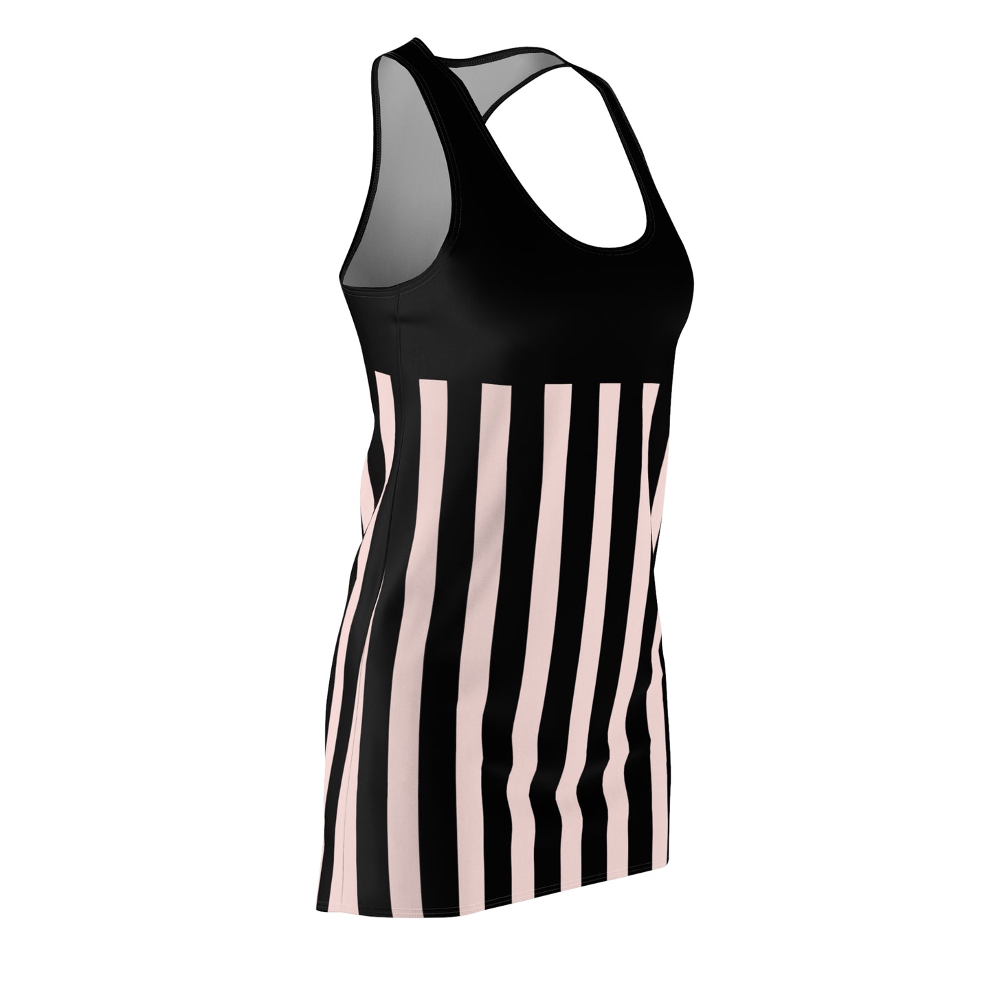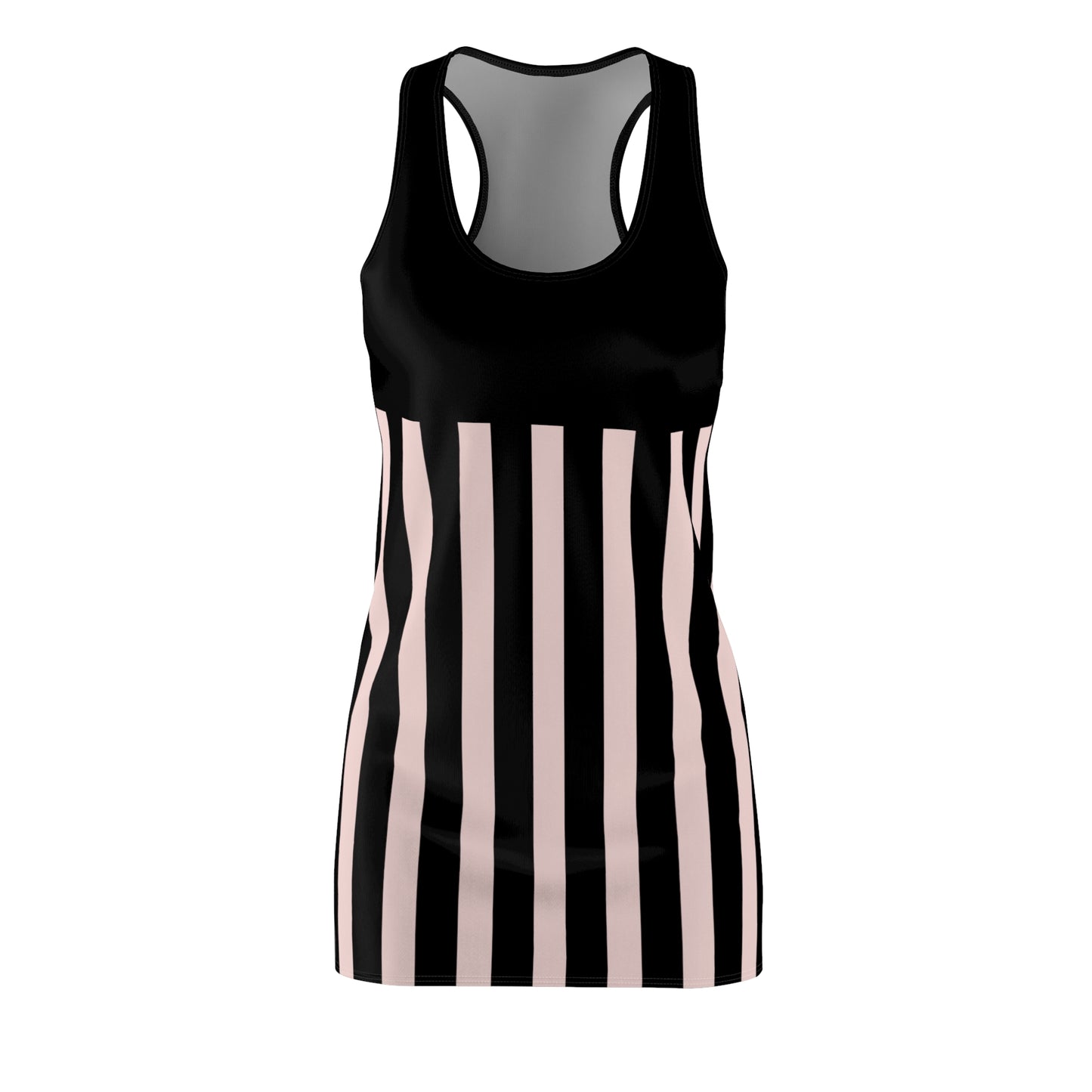 Gently Pink + Black Striped Slinky Women's Racerback Dress