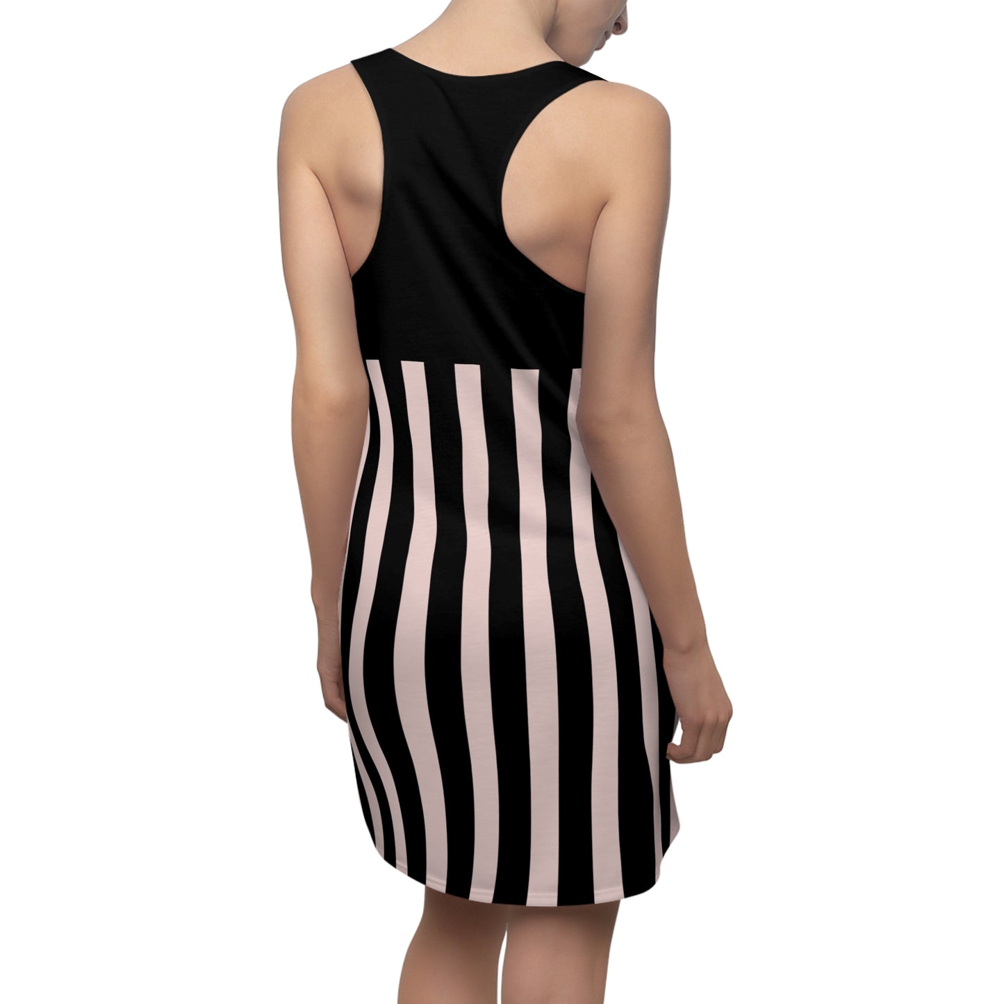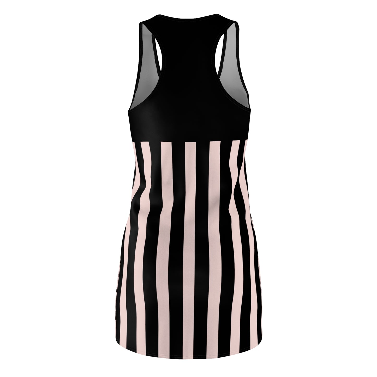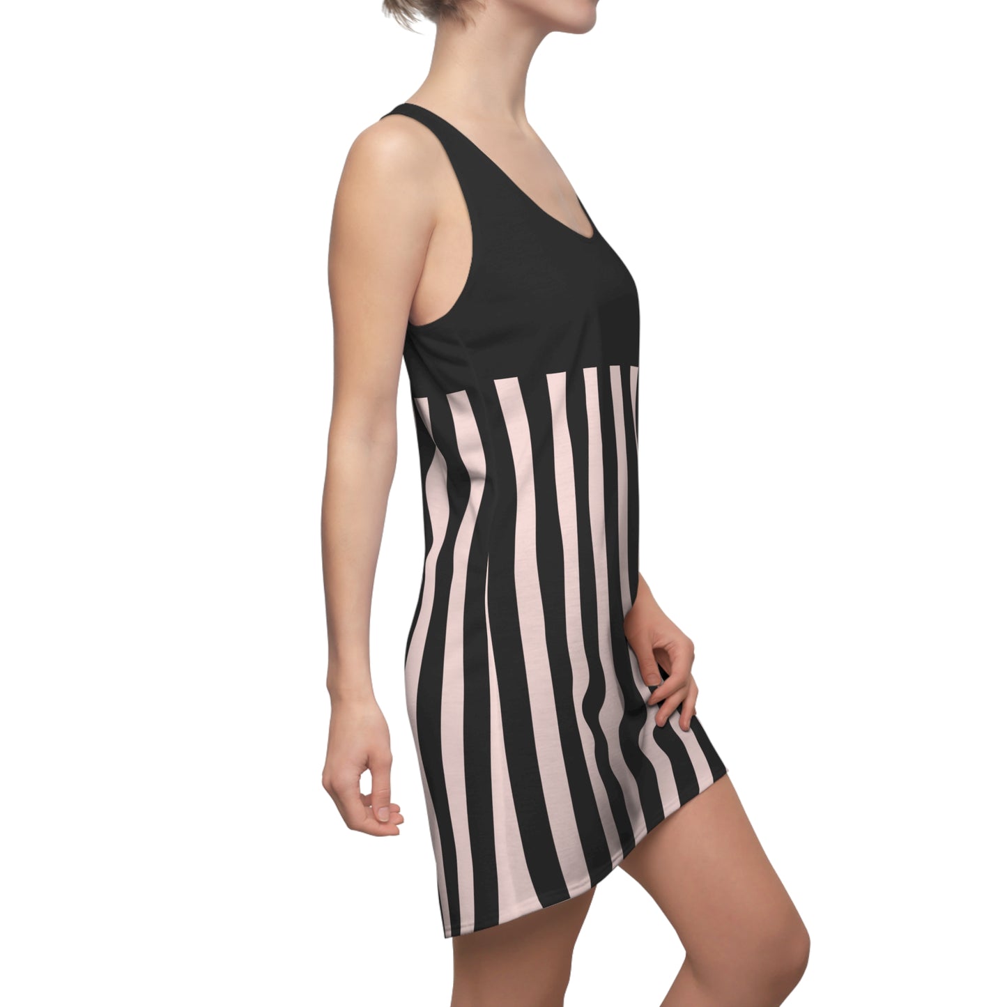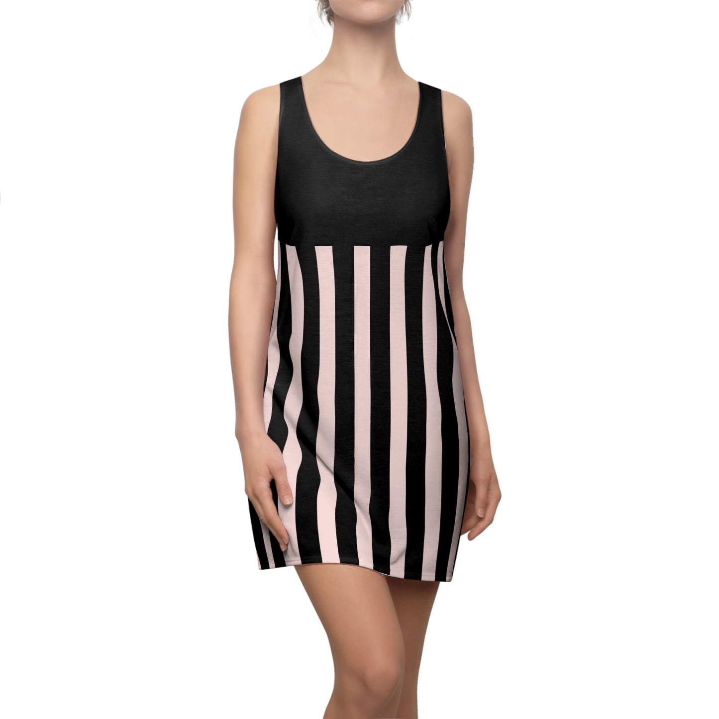 Gently Pink + Black Striped Slinky Women's Racerback Dress