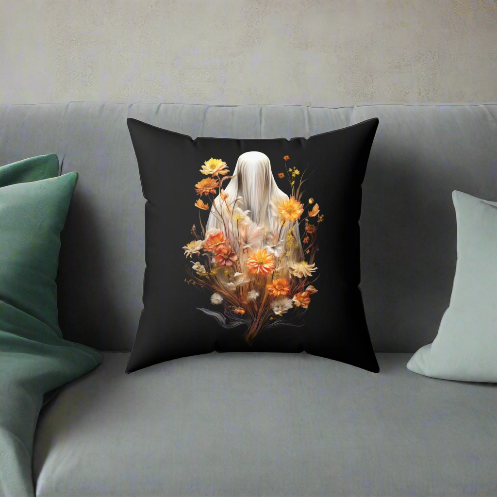 Halloween Garden Haunting Faux Suede Throw Pillow