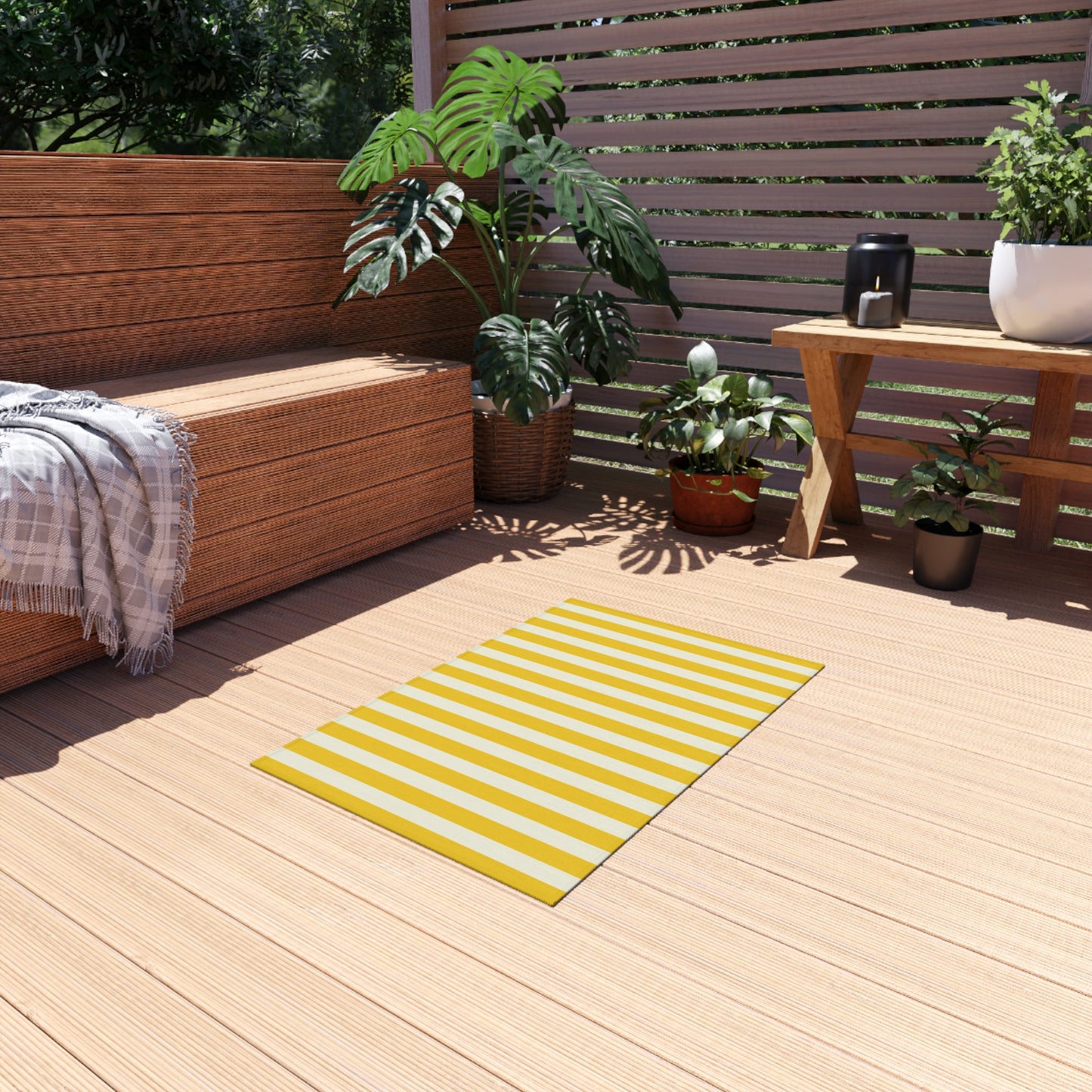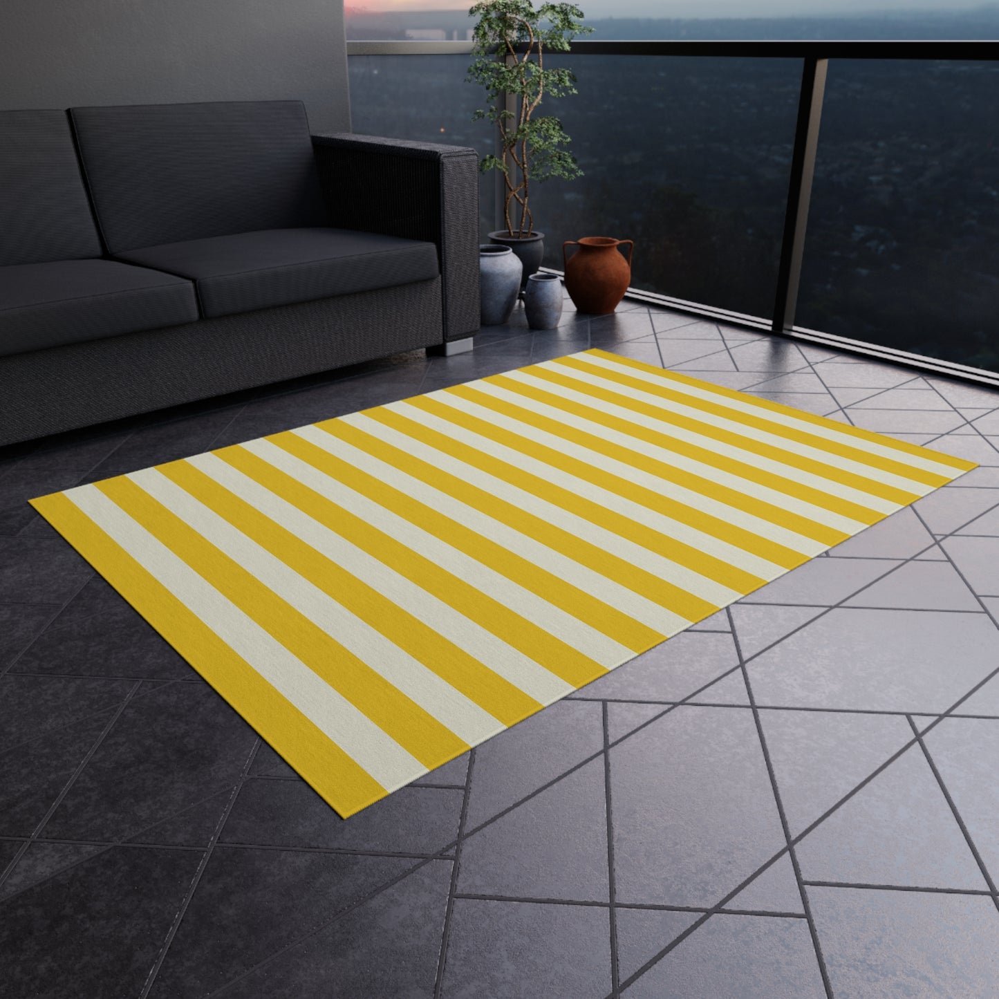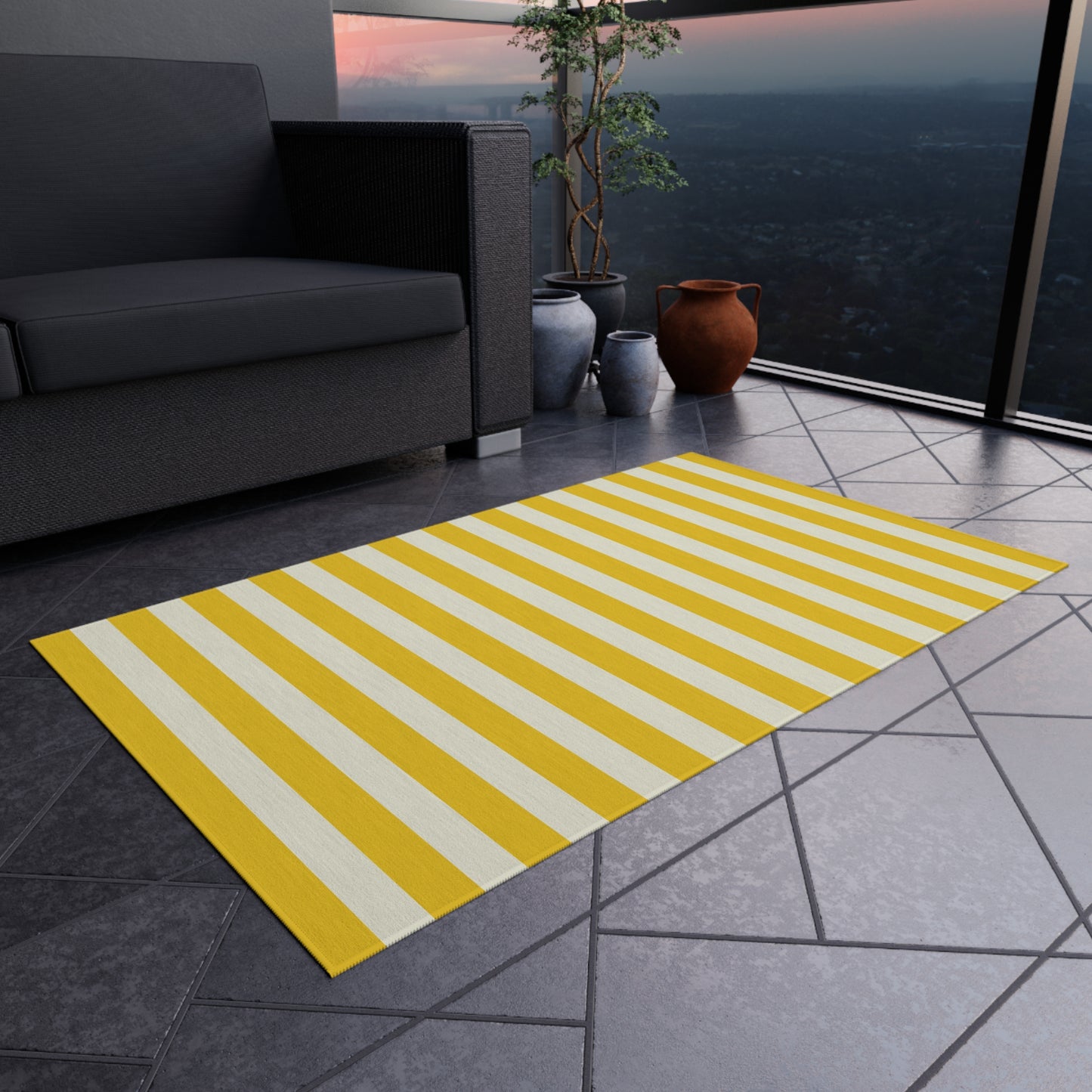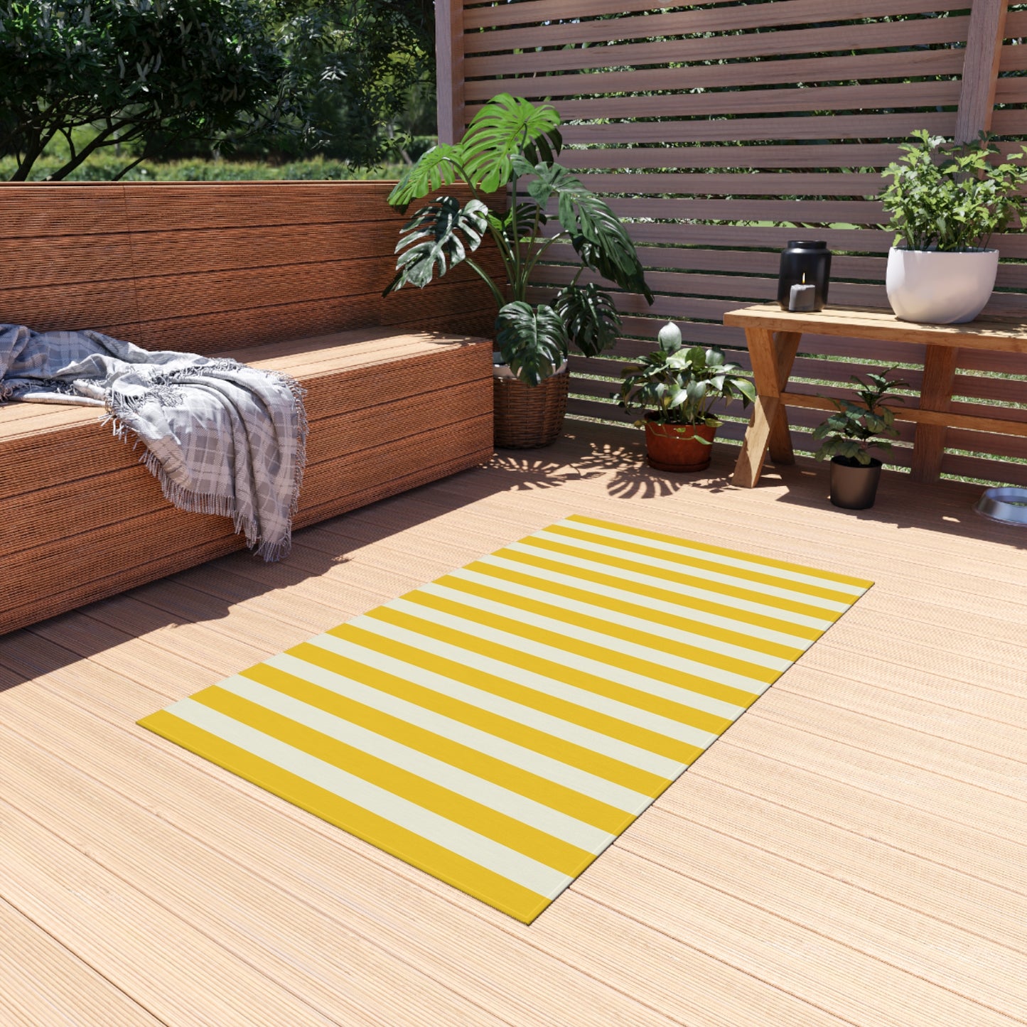 Lemony Yellow Stripes Outdoor Rug