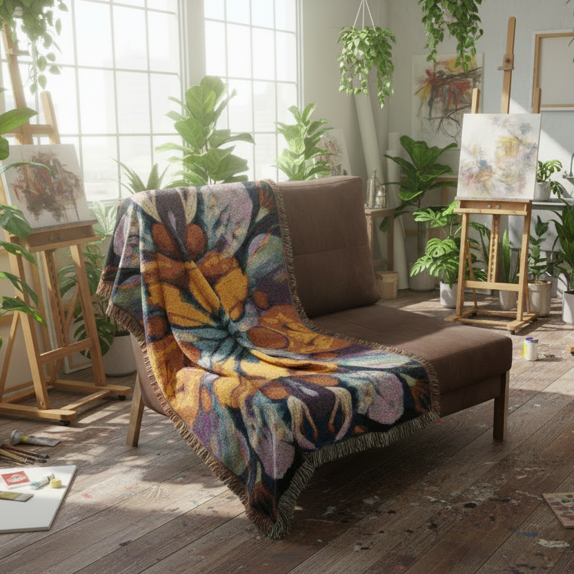 Painted Flower Symmetry 100% Cotton Woven Blanket (3 sizes) | Made In USA