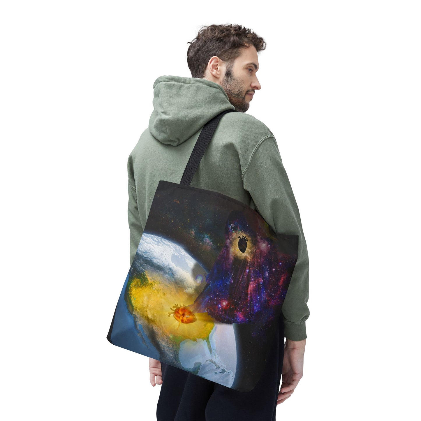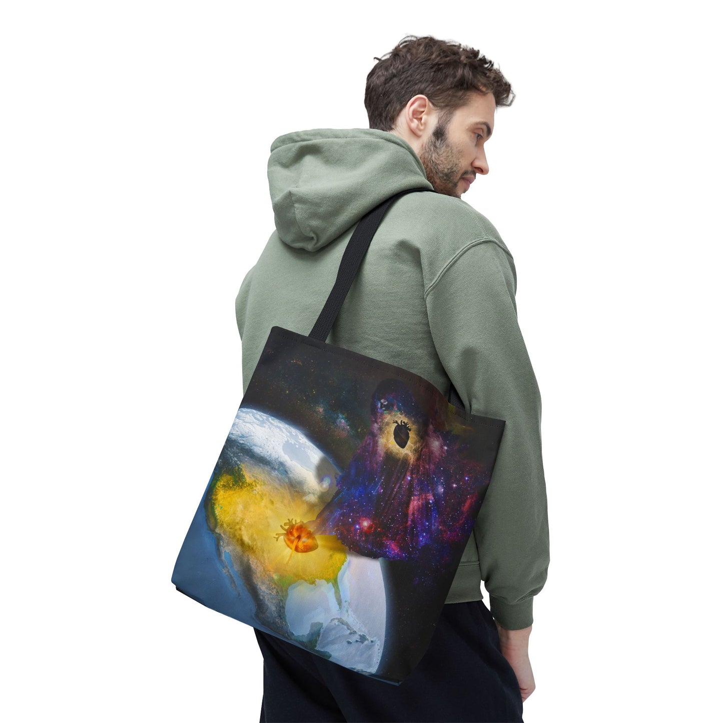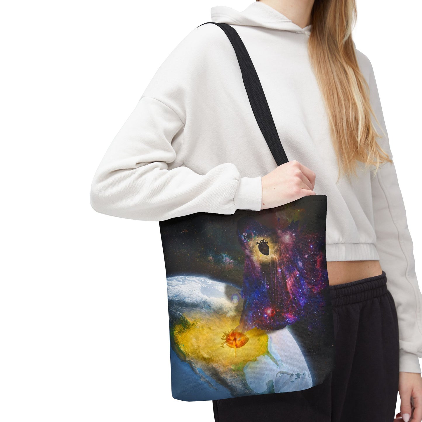 This surreal art tote bag comes in three size options. Made from spun polyester, it features double-stitched seams, cotton webbing straps, and non-woven laminate lining for long-lasting durability.