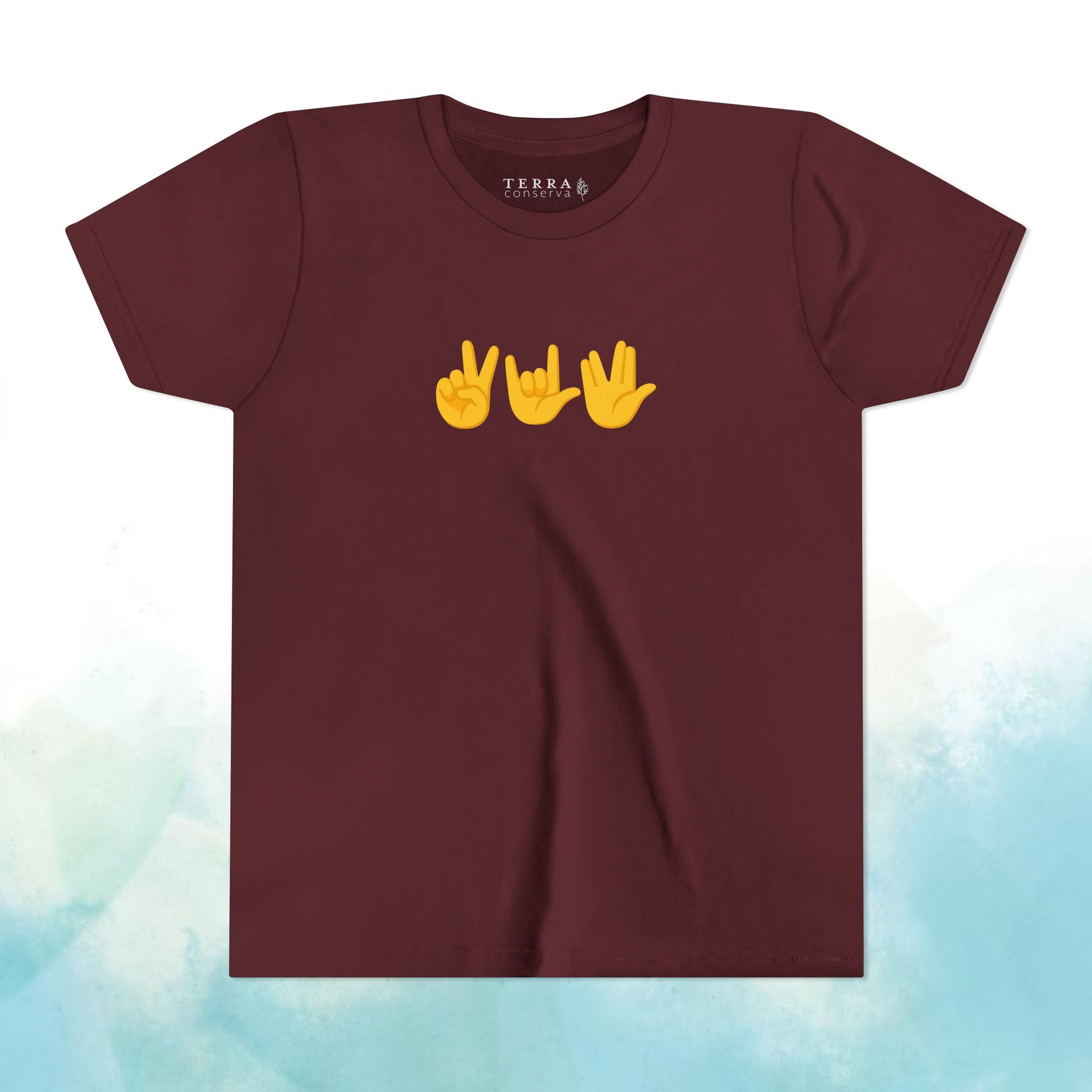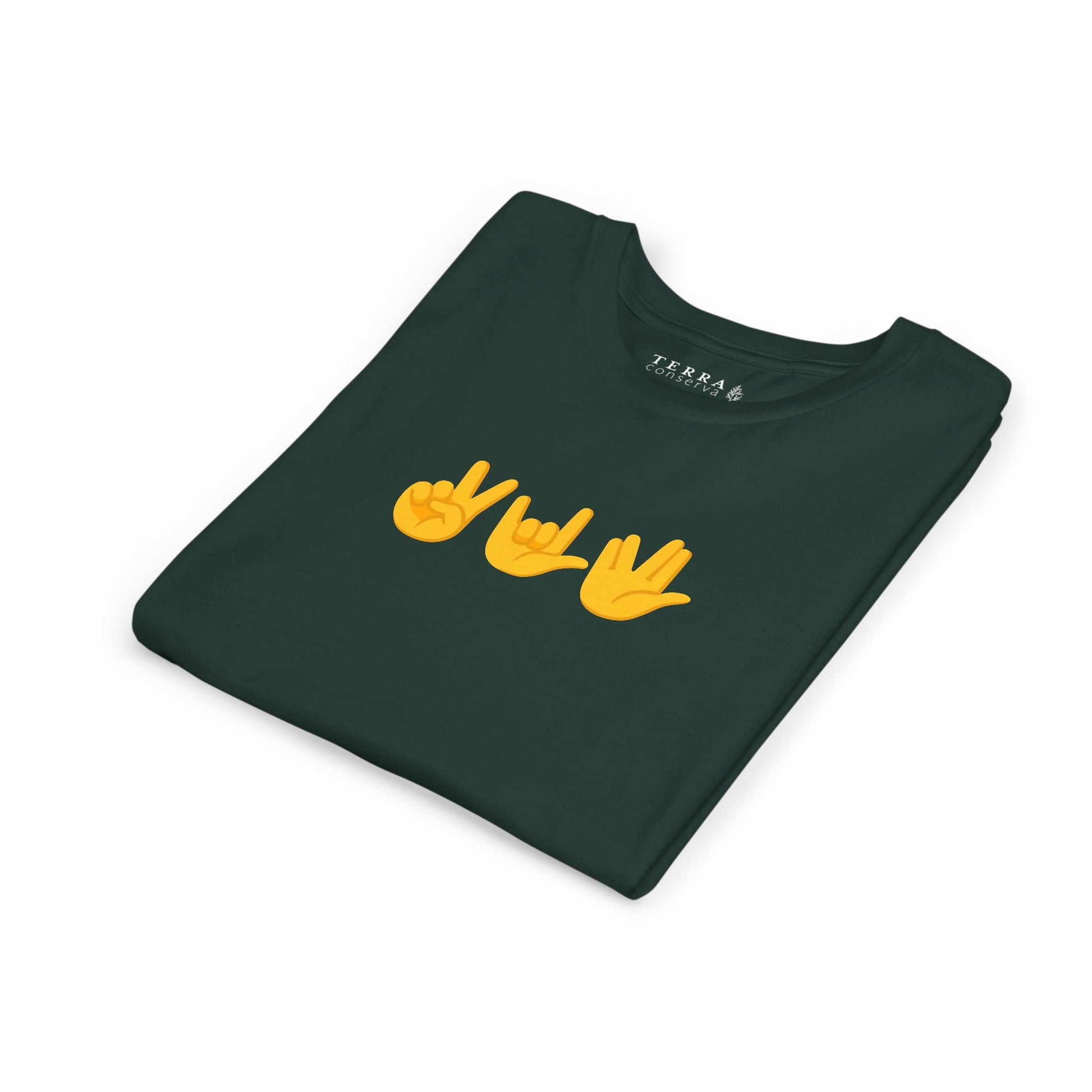 Peace, Love, Live Long Emoji Short Sleeve Kids' T-Shirt (multicolors)