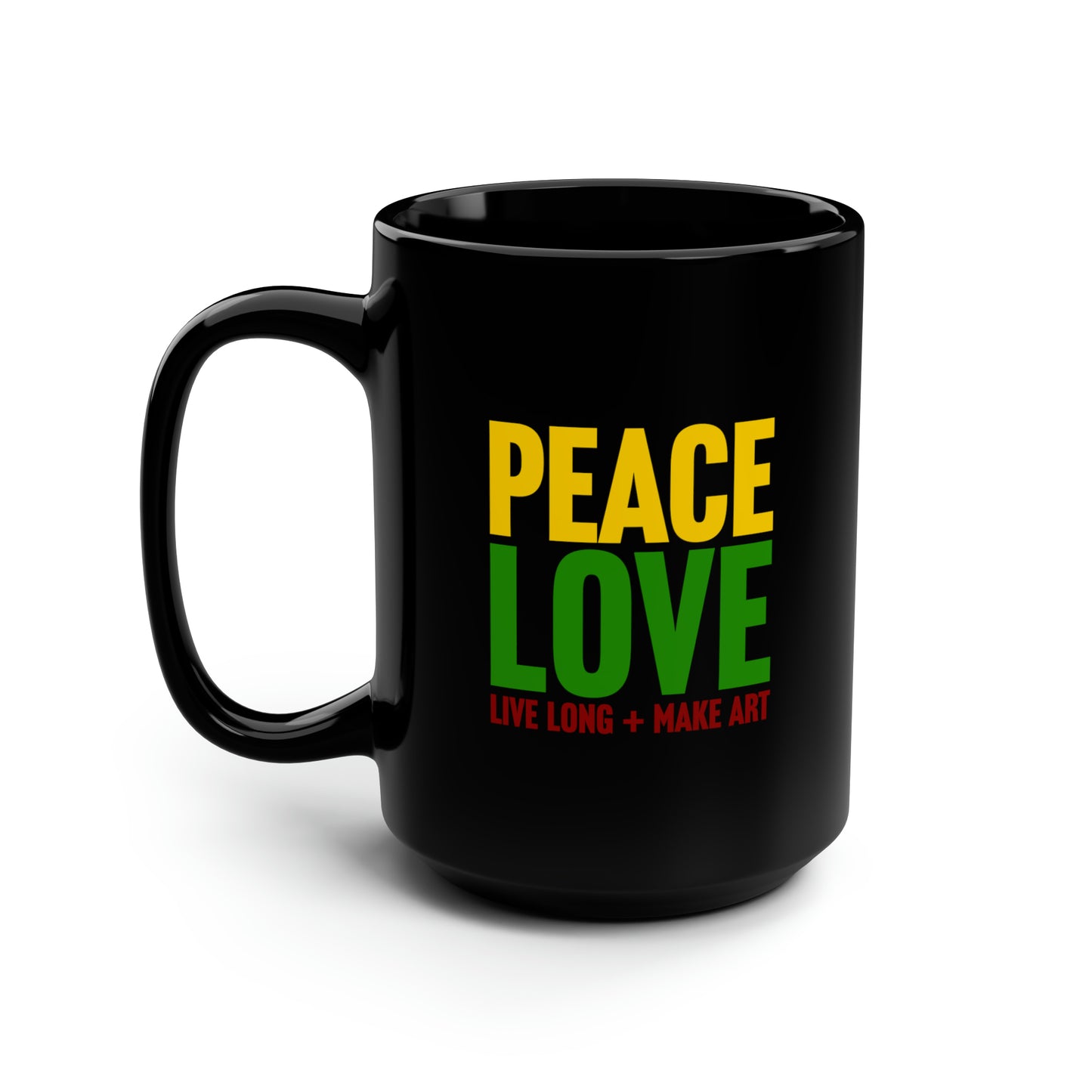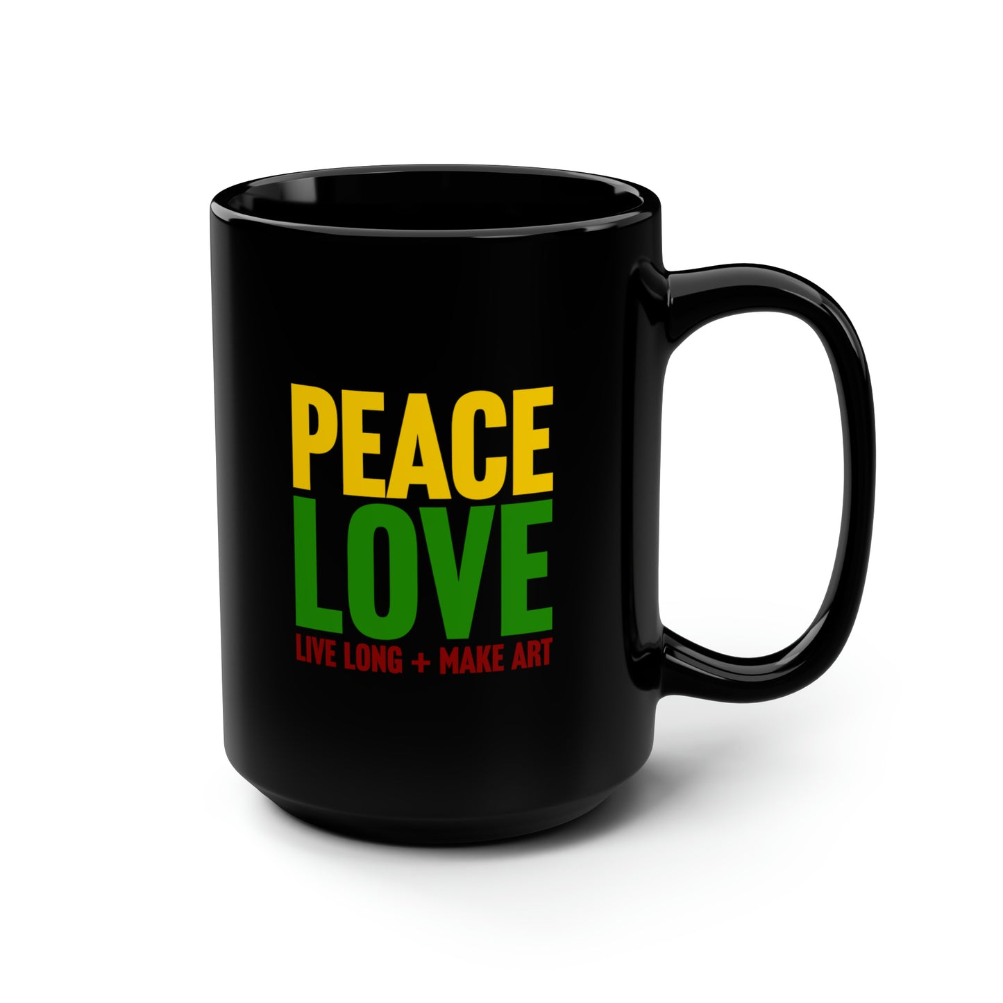 Peace, Love, Live Long + Make Art 15oz Black Mug
