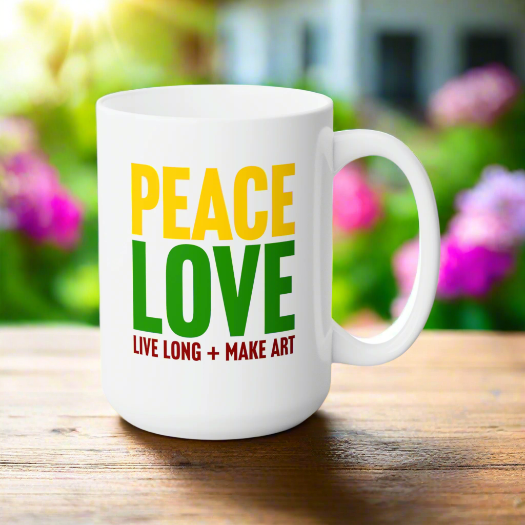 Peace, Love, Live Long + Make Art 15oz Ceramic Mug
