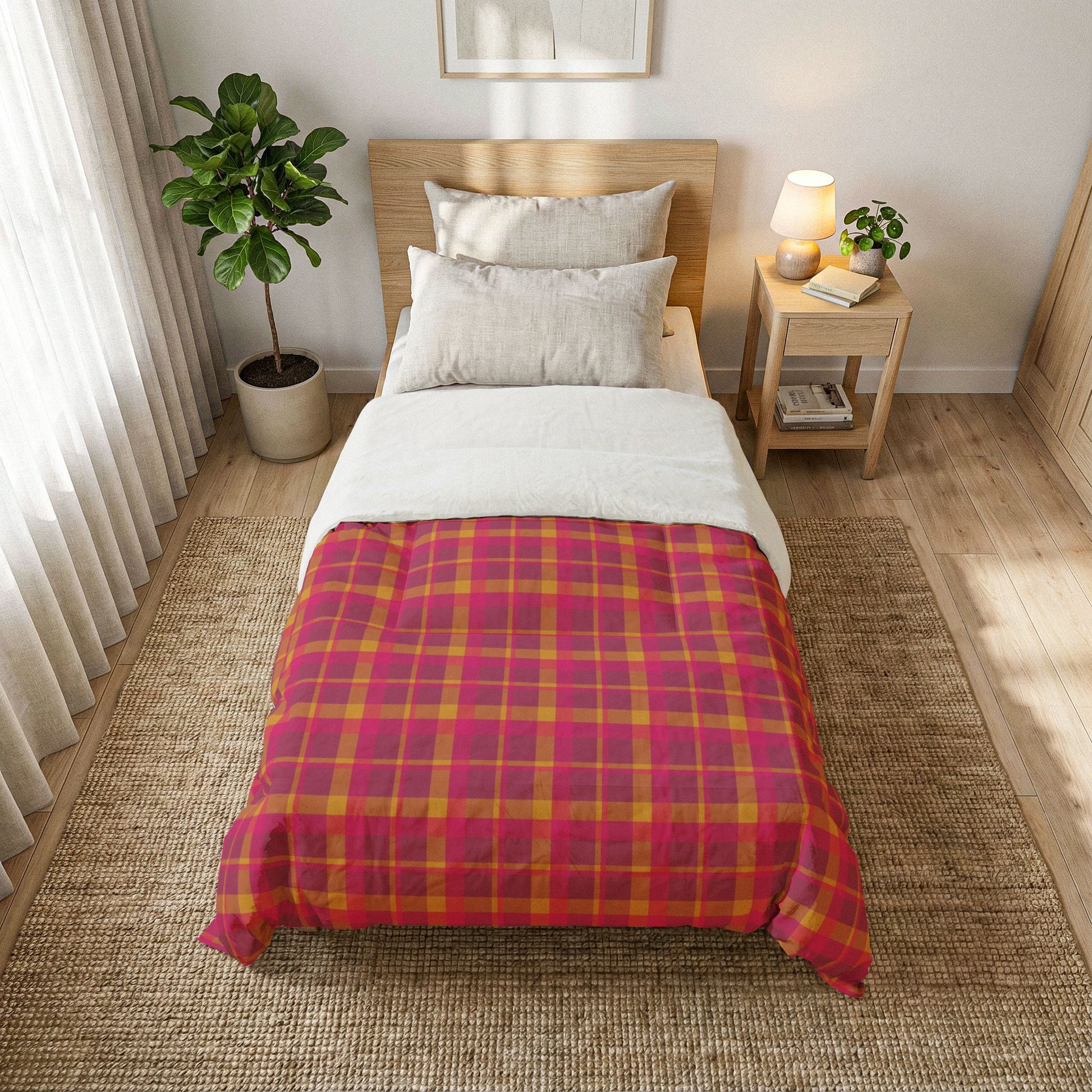 This 100% cotton luxury comforter features a vibrant edge-to-edge print and a white underside.