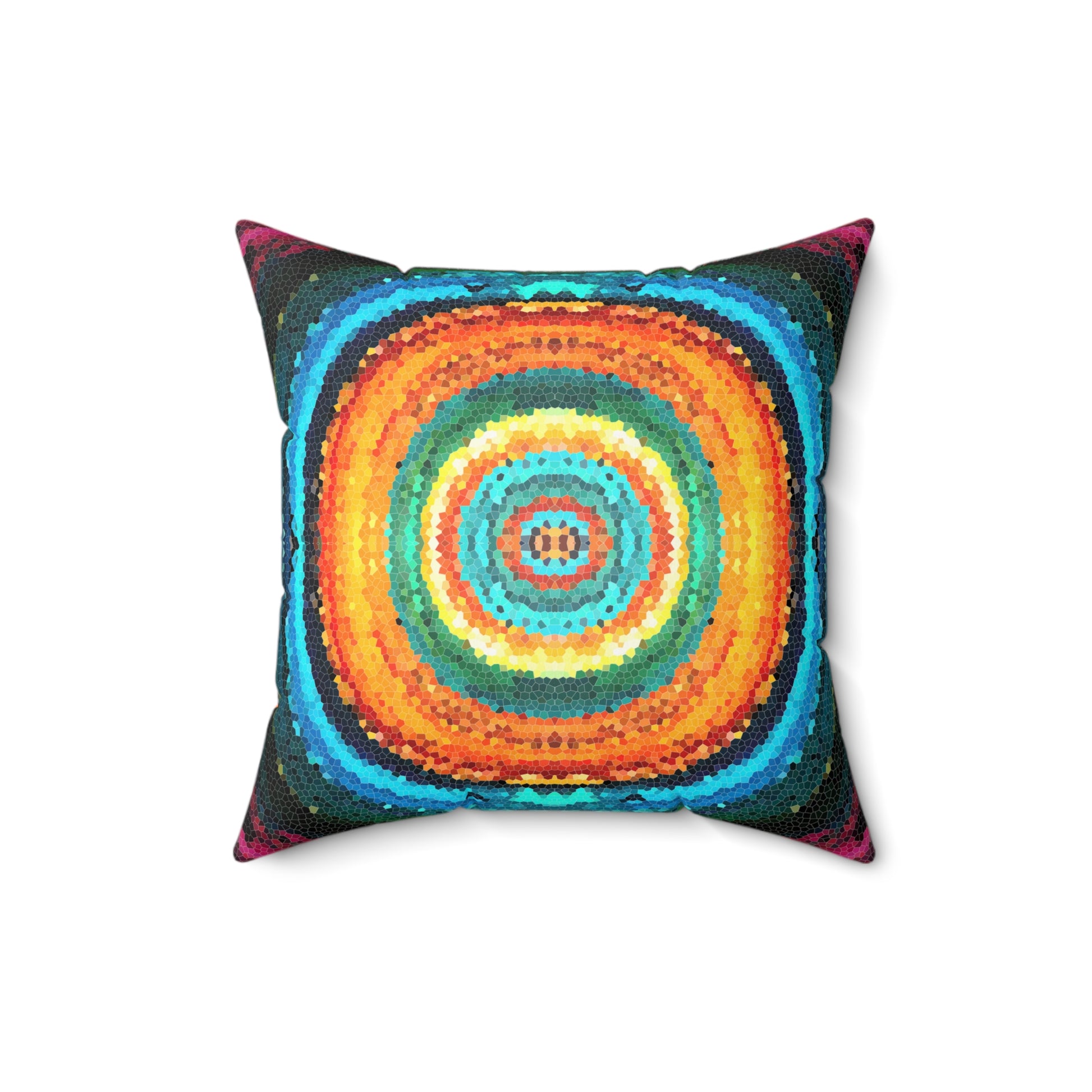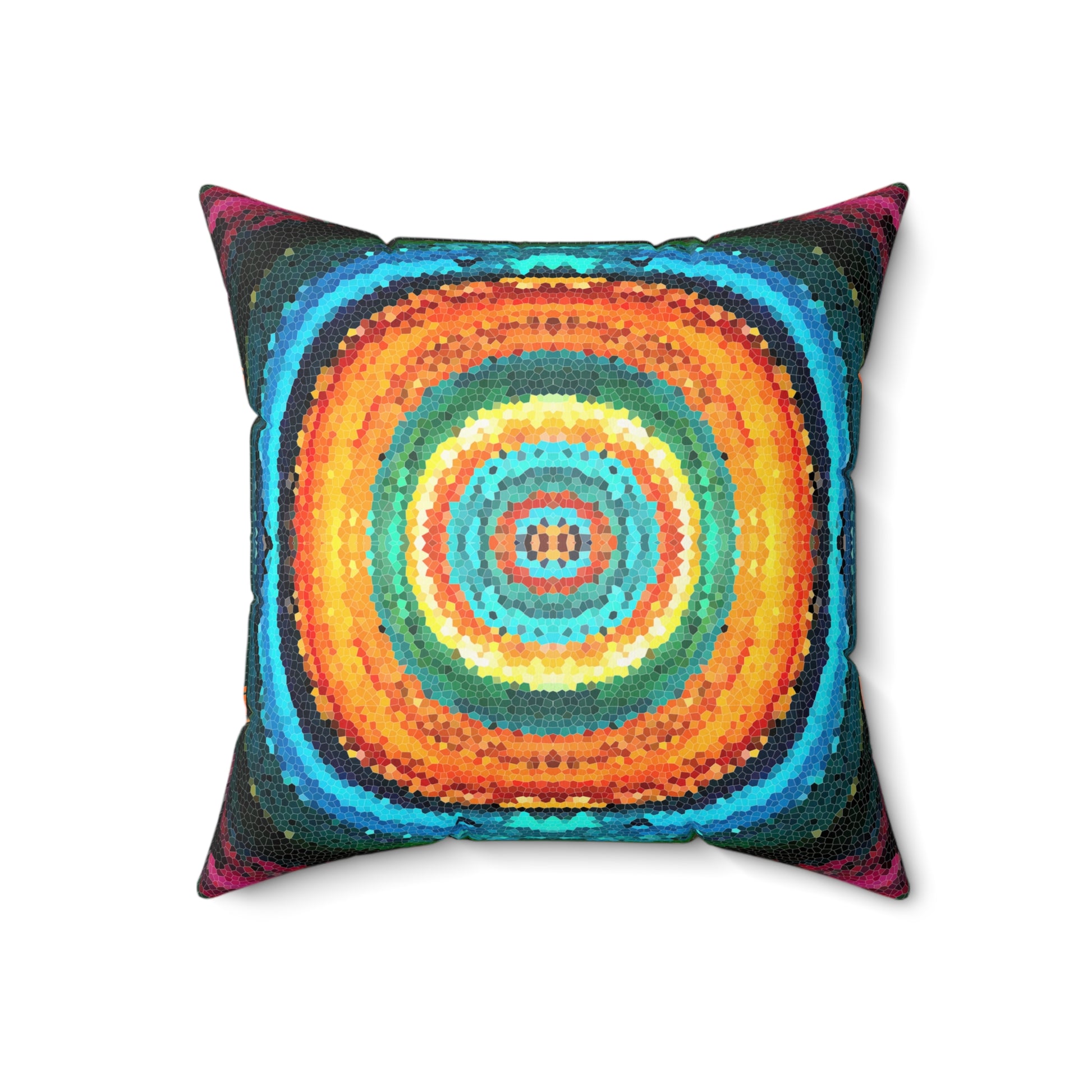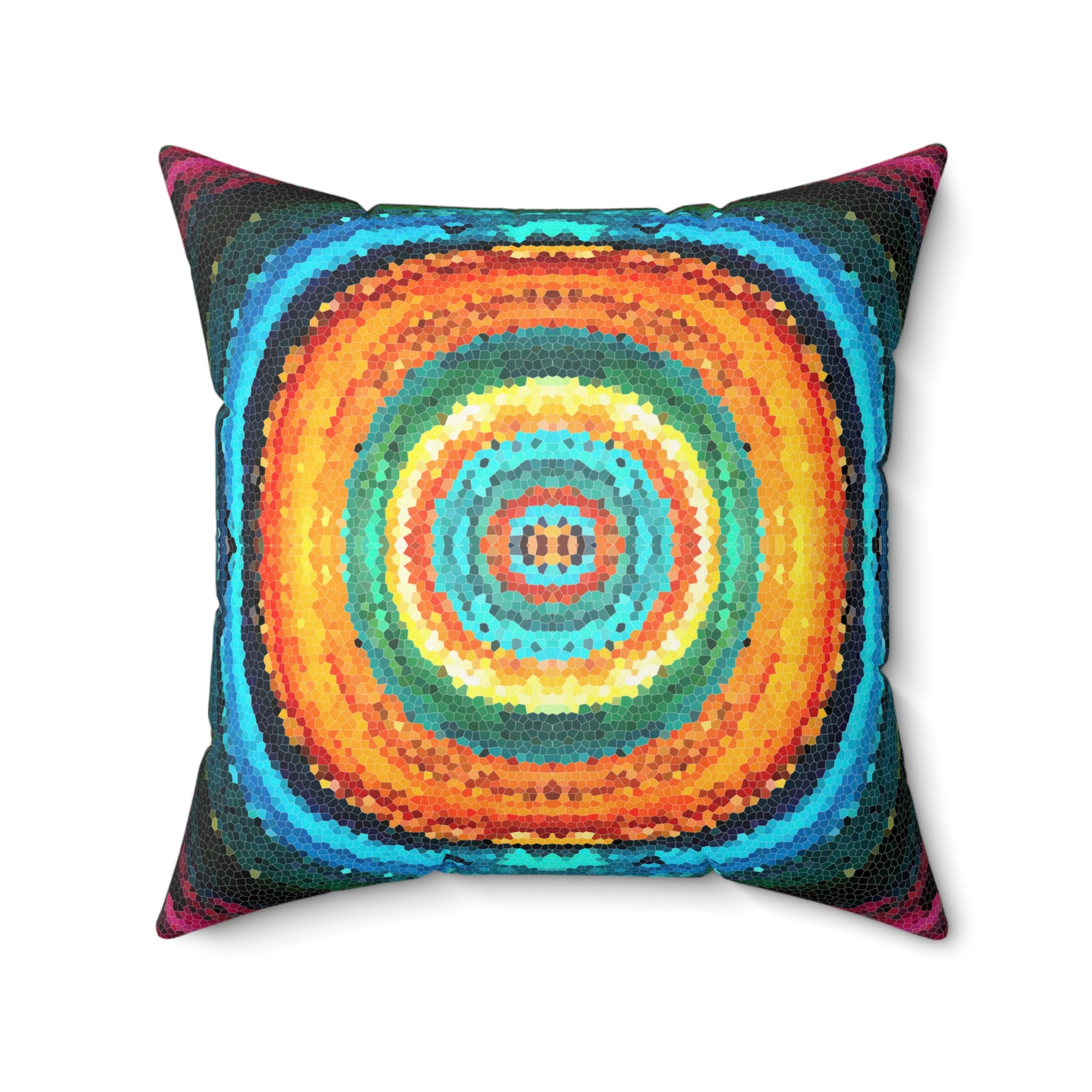 Pixel Mosaic Teal Orange Faux Suede Throw Pillow
