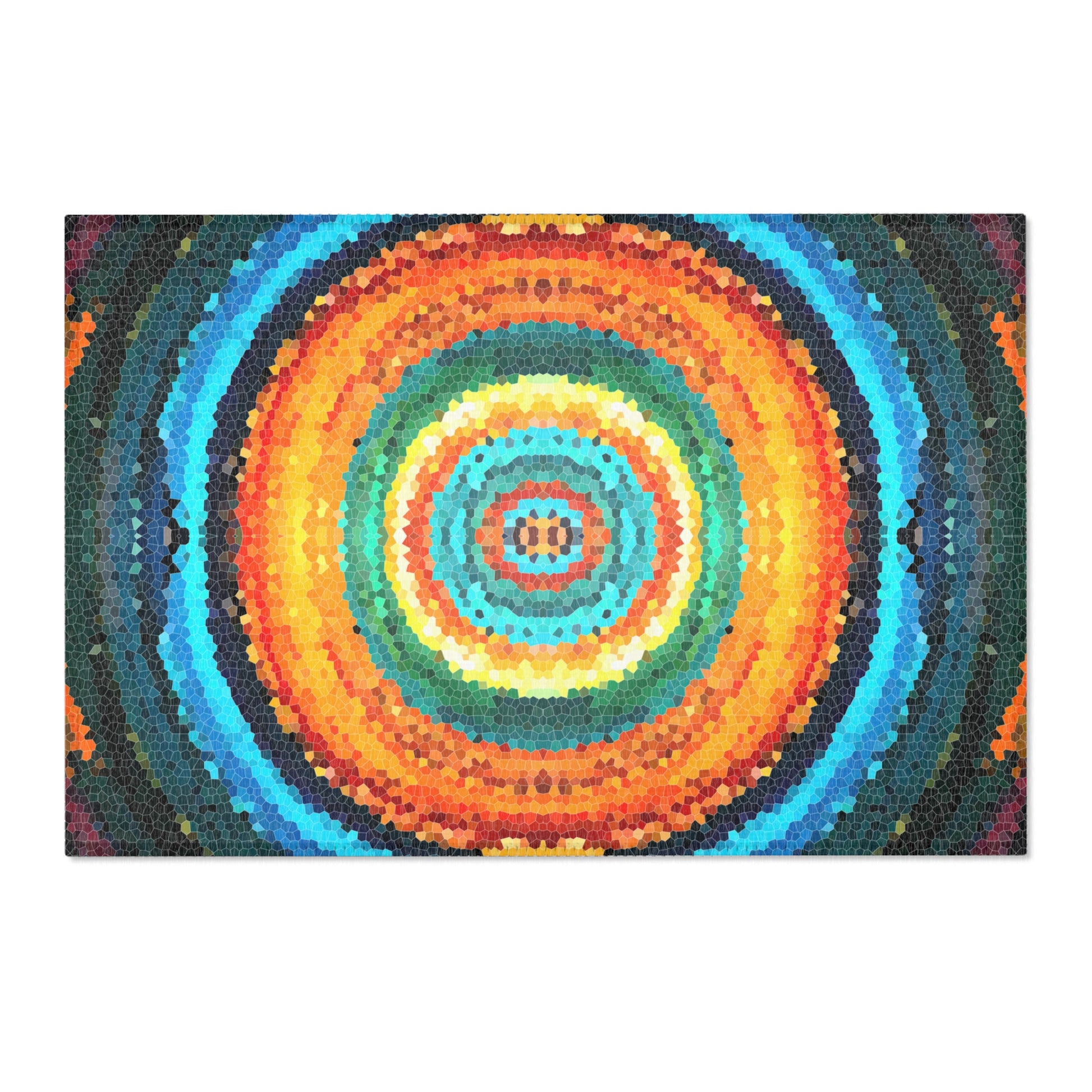 Pixel Mosaic Teal Orange Indoor Area Rug