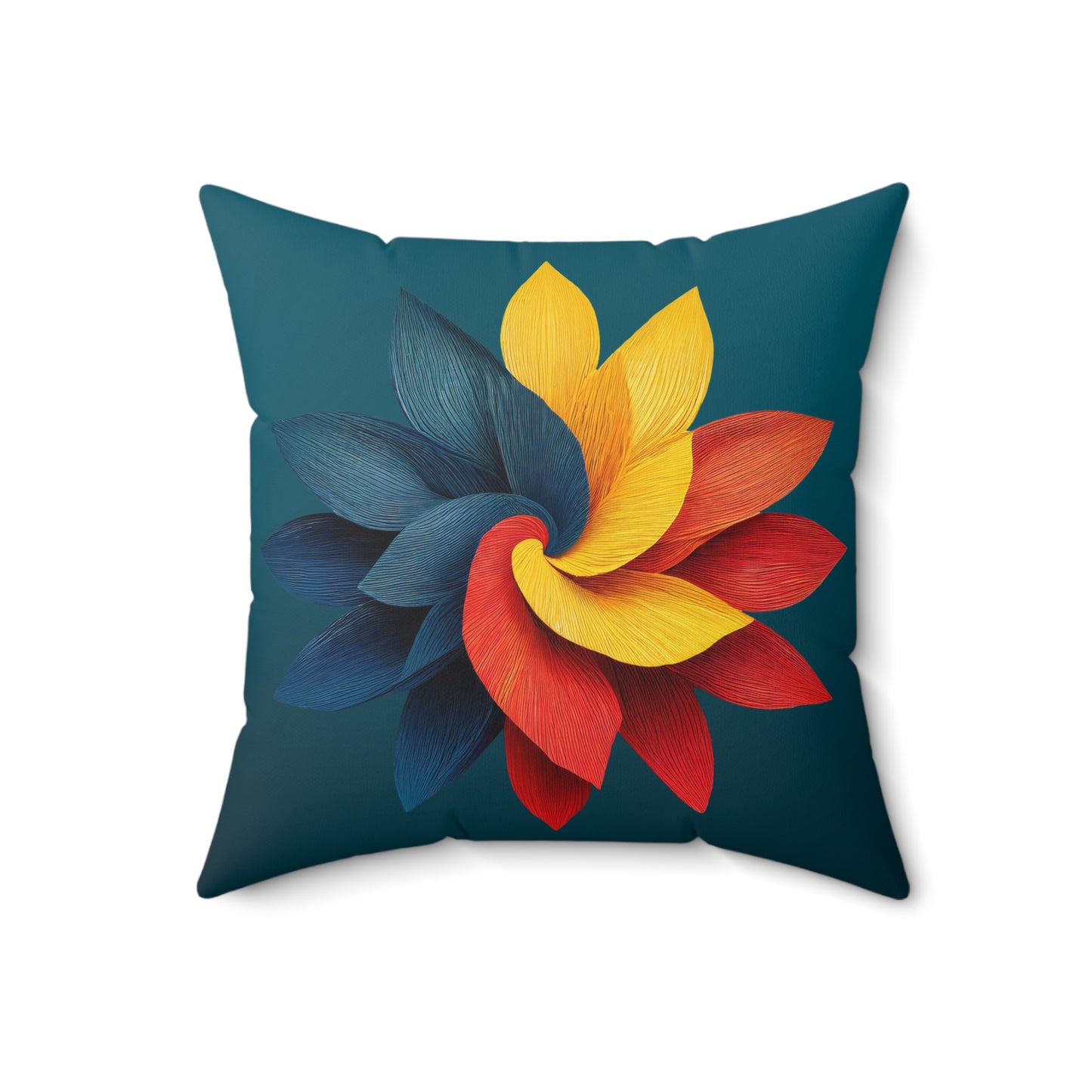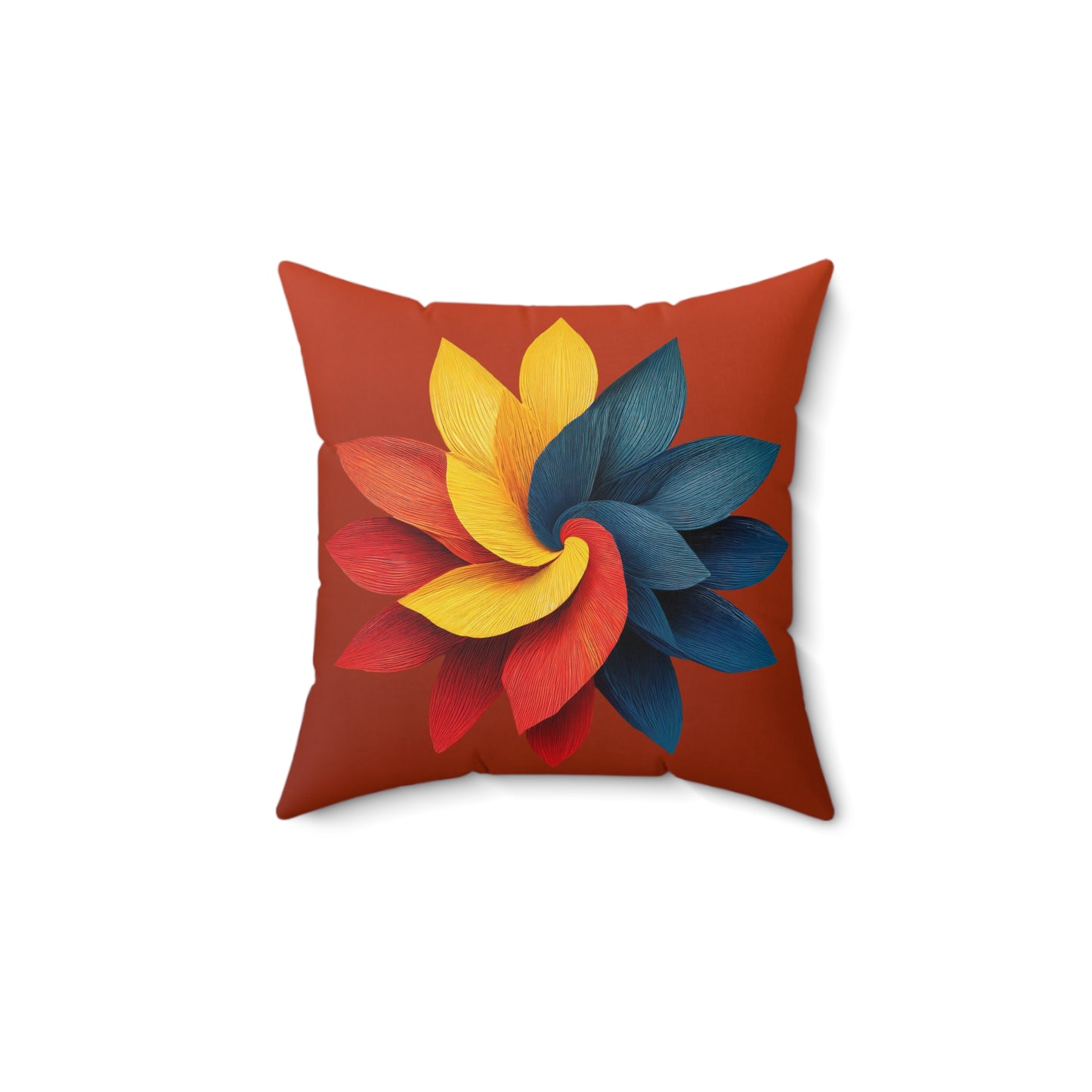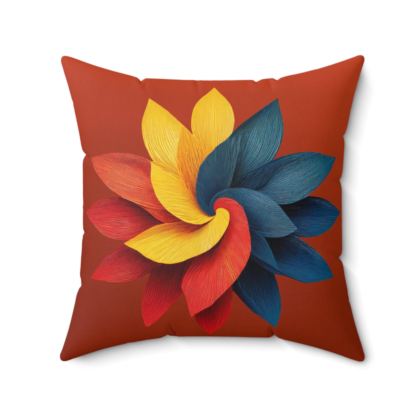 Red Blue Twisty Flower Double-Sided Faux Suede Throw Pillow