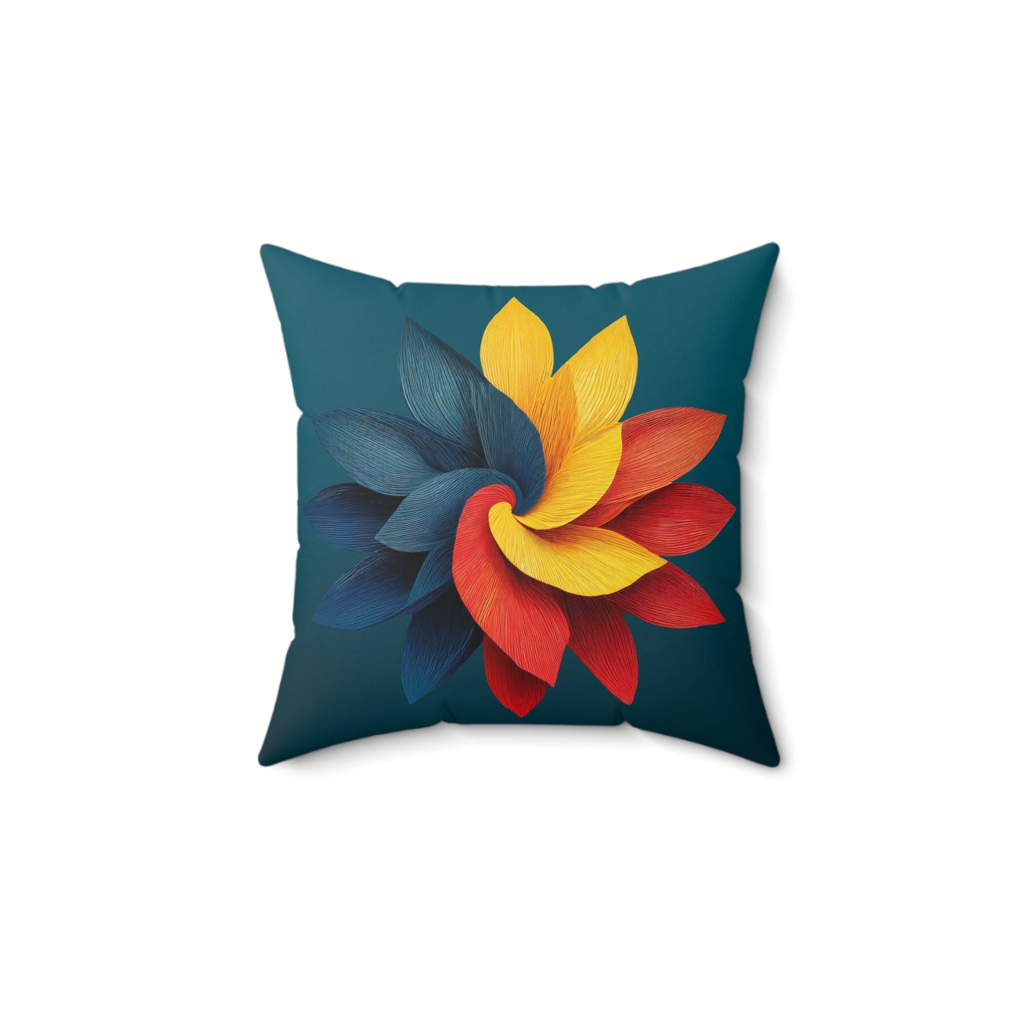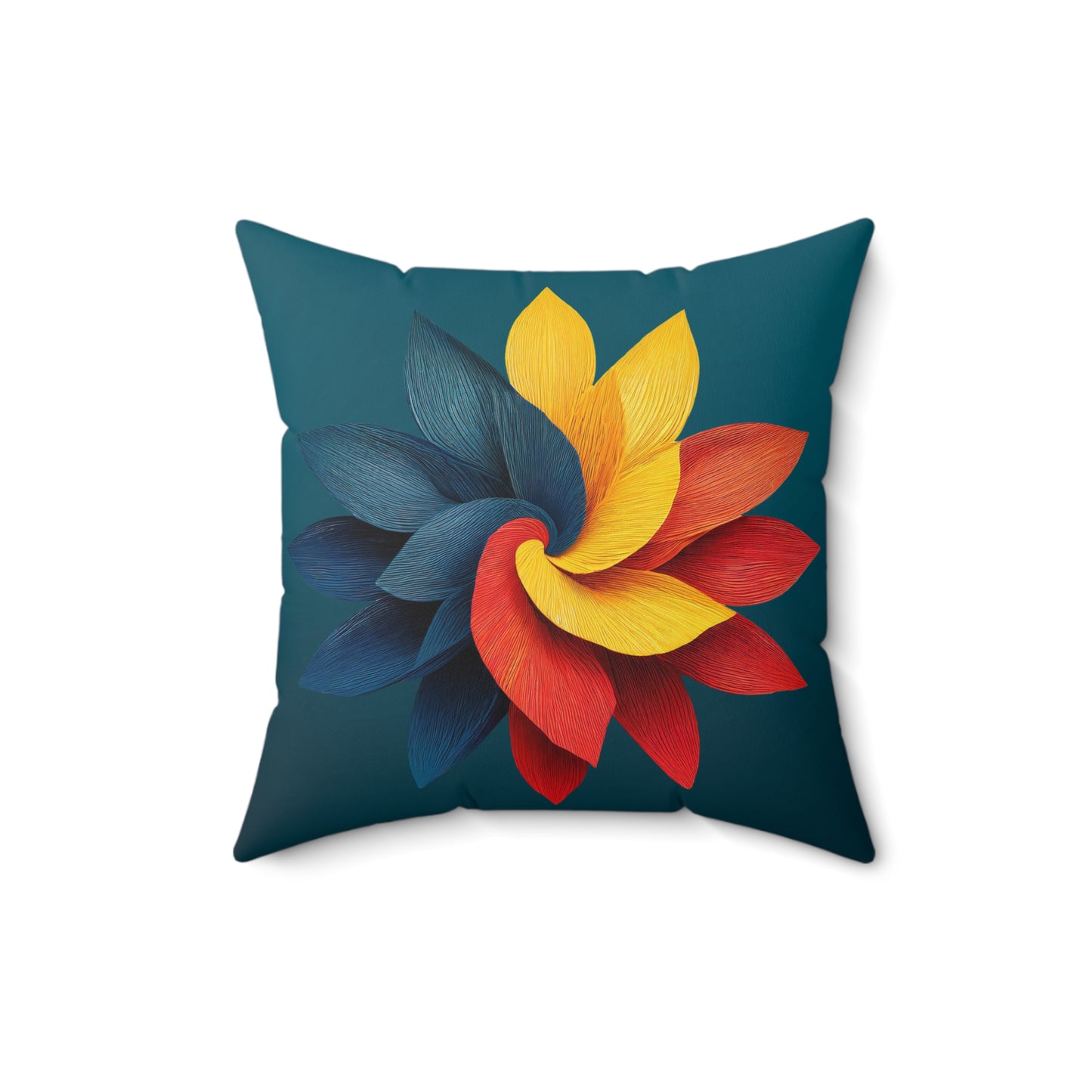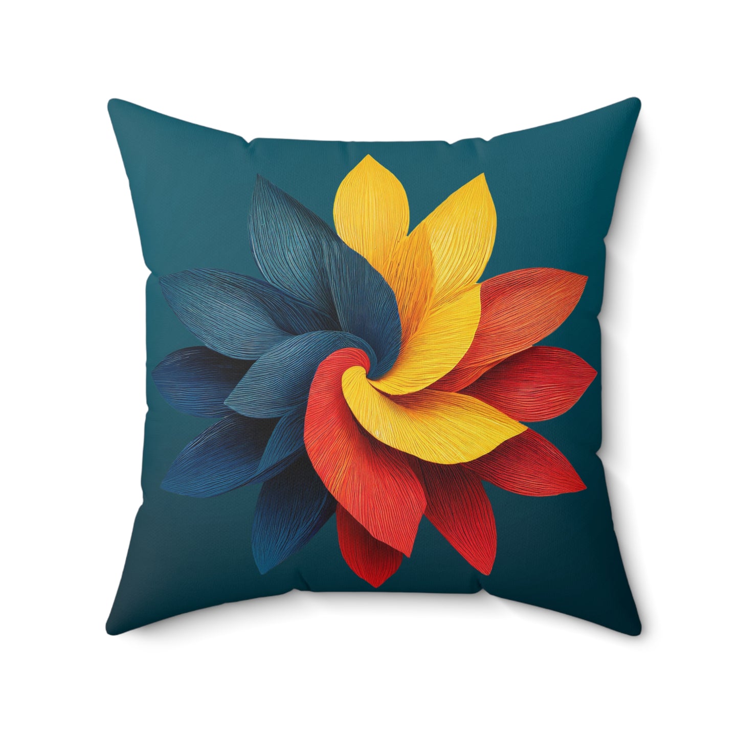 Red Blue Twisty Flower Double-Sided Faux Suede Throw Pillow