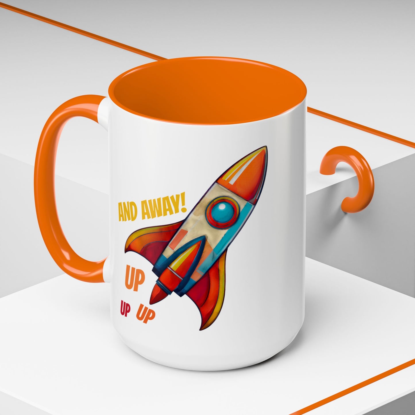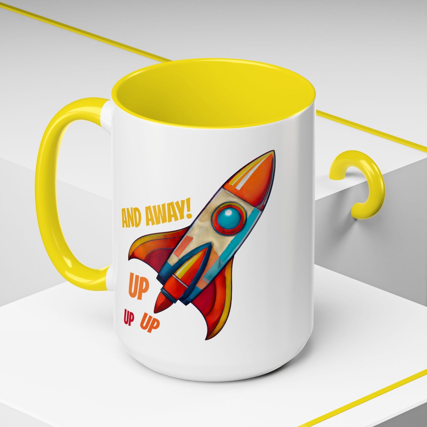 Rocket Ship Liftoff Colorful Ceramic Mug (11, 15oz)
