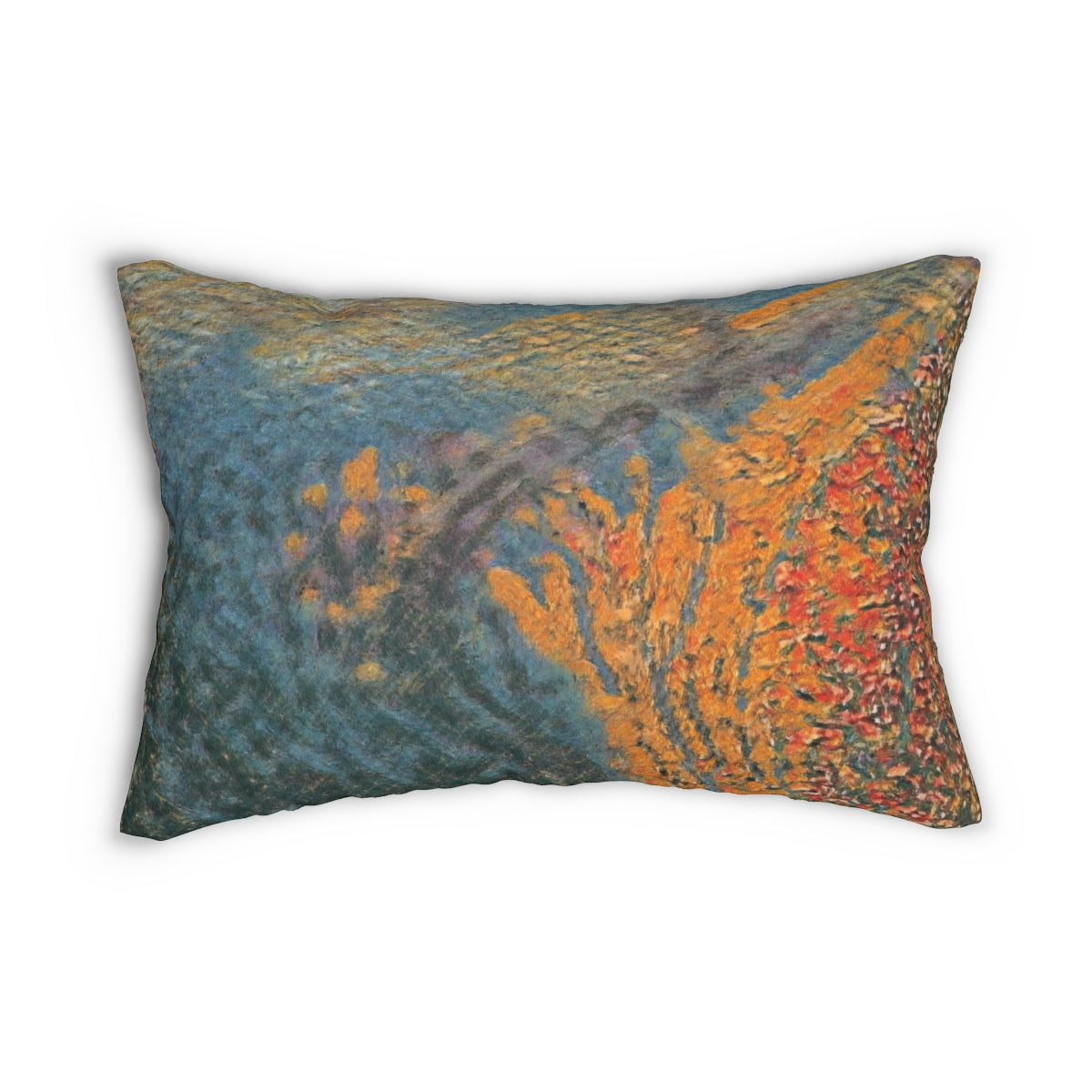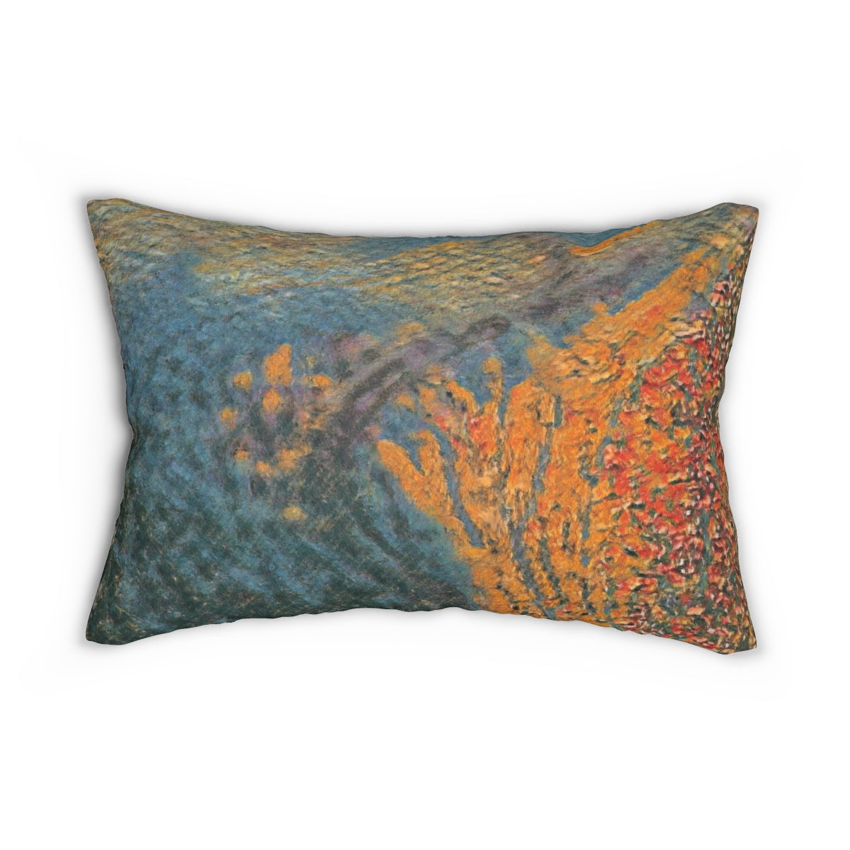 Add this beautiful lumbar pillow to your home decor pieces today. This is a removable cover with the stuffing pillow INCLUDED. The casing is made of a spun polyester fabric that is inherently mildew and water-resistant. It has a hidden beige zipper to maintain a finished and stylish look.