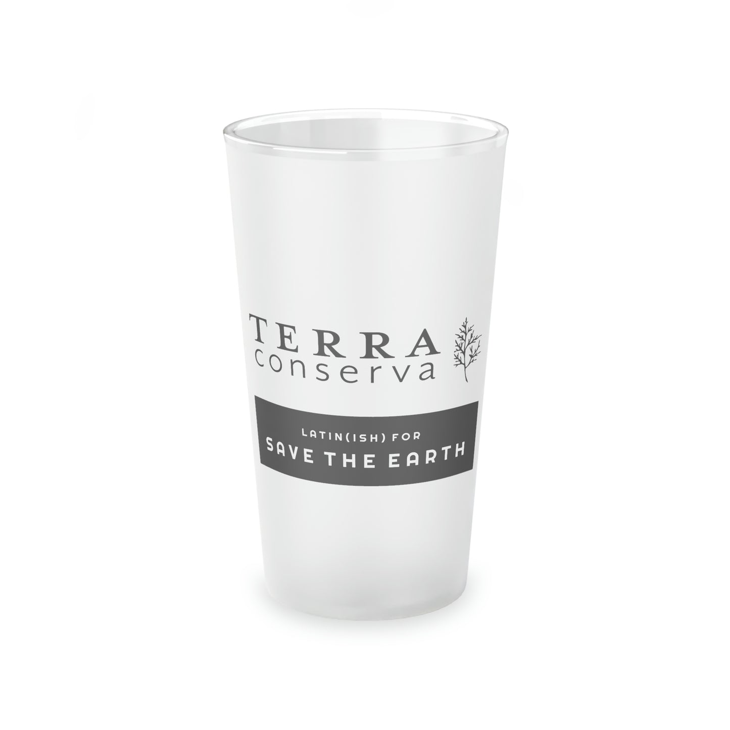 Terra Conserva very loosely translates from Latin as "Save the Earth" (if we want to be technical about it, the strict translation is "with the Earth having been saved/preserved"). I like to think of our planet as already having been saved, and she is simply in need of having her wonders preserved for future generations to behold. Help spread this message and support the Terra Conserva brand with this frosted pint glass!