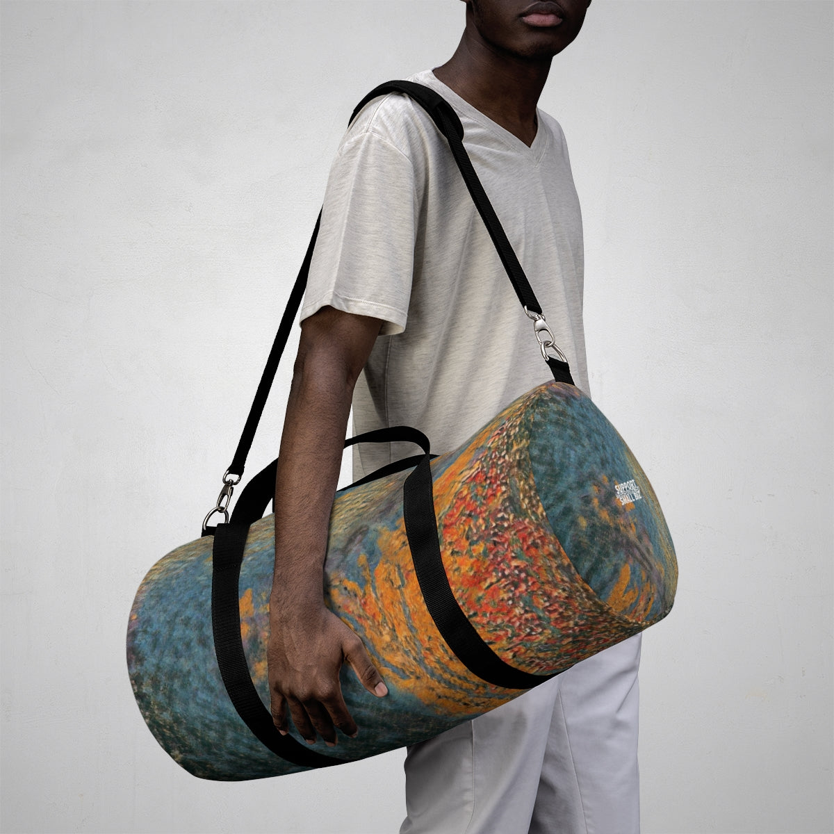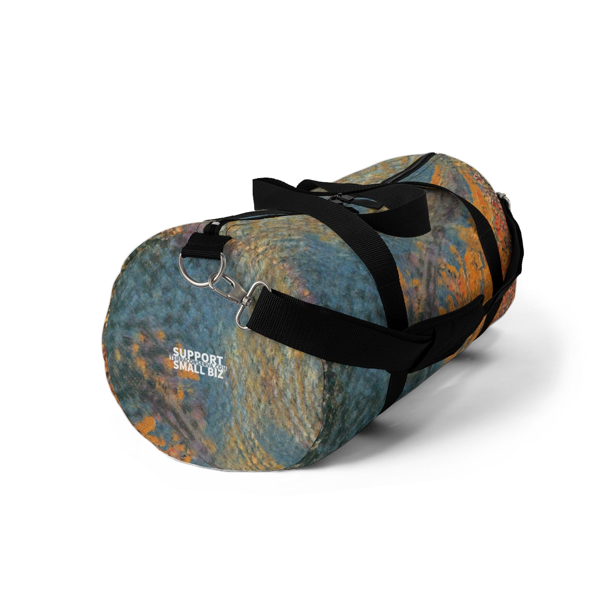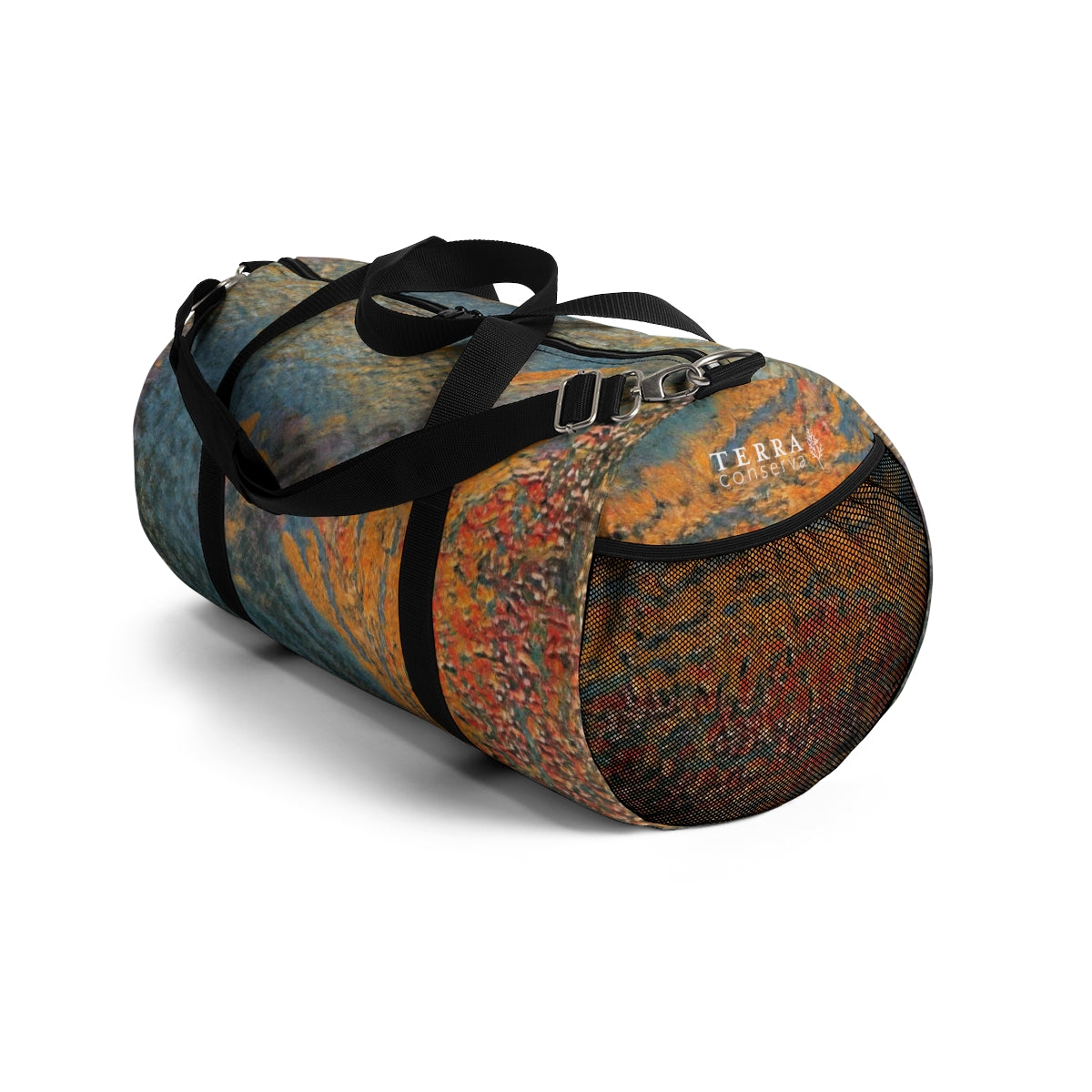 Lightweight and durable, our duffel bags are perfect for the gym, a trip, or for any other travel or storage need. Easy to carry in your hands or around your shoulders, these duffel bags are ready to go anywhere, and in unique and artistic style, featuring original Terra Conserva abstract artwork you cannot find anywhere else!