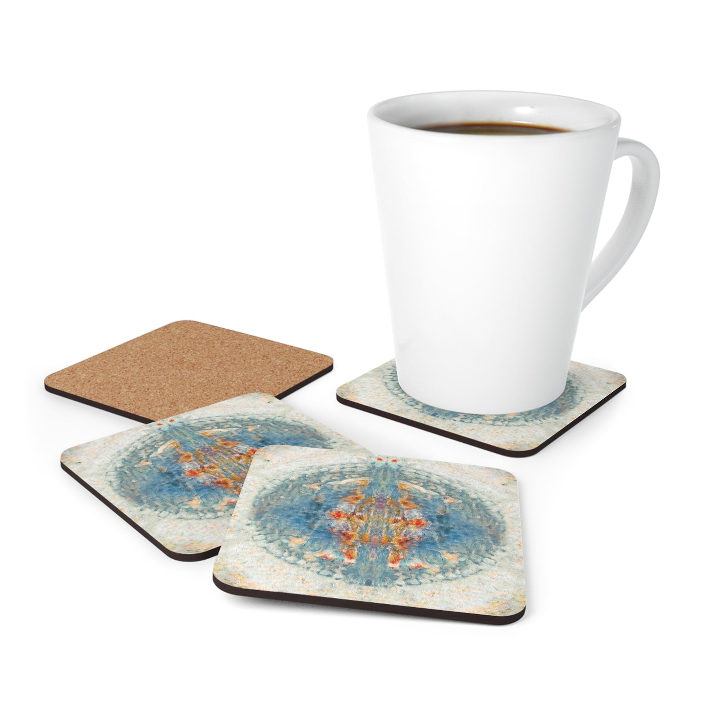 With each order, you get four coasters made with a high-gloss top and feature a cork back to prevent sliding.