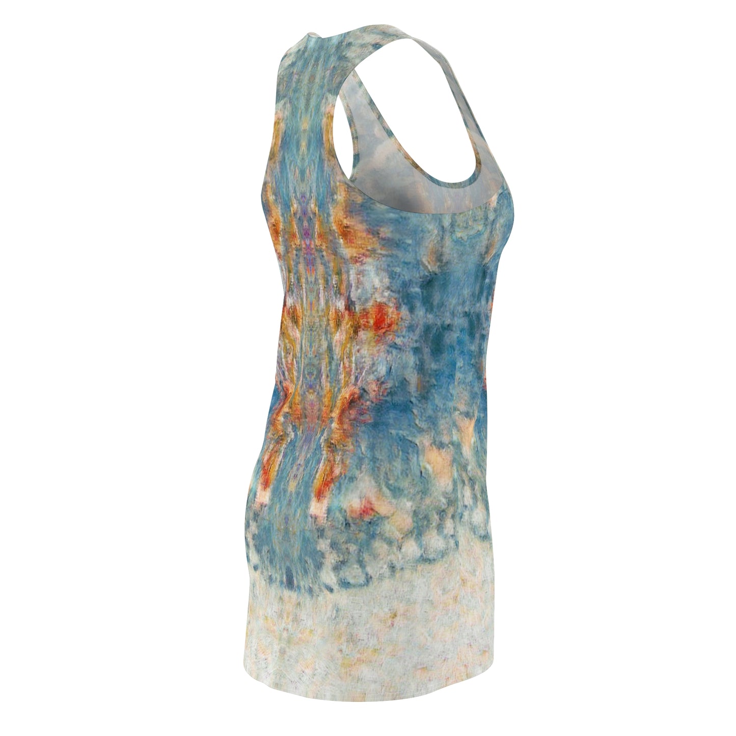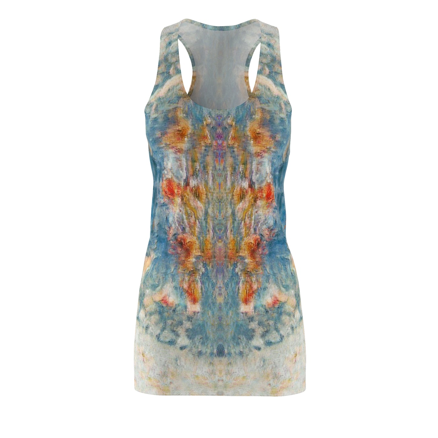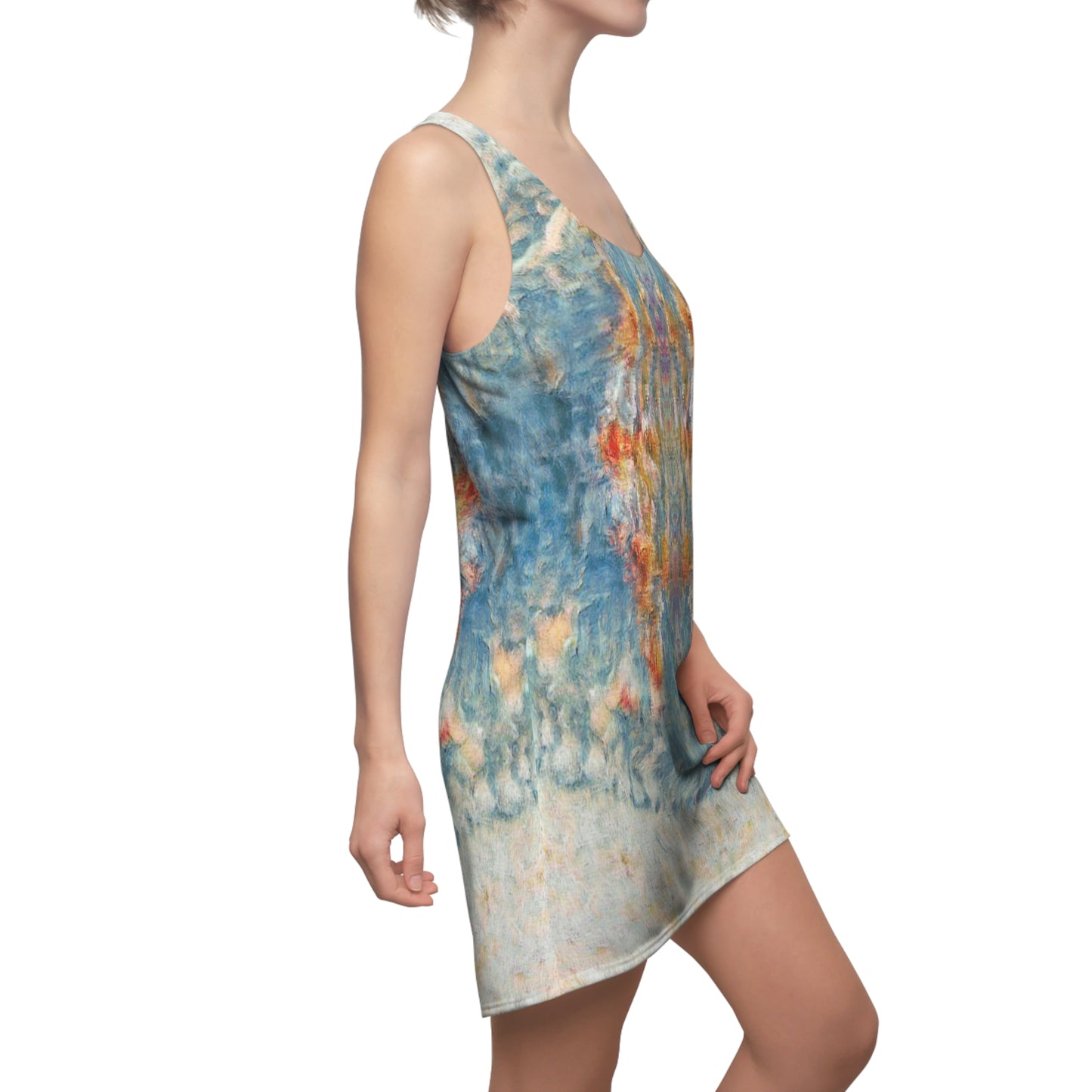 A feminine and stylish, yet really comfortable dress. This high quality AOP racerback dress is appealing from every angle. Inspired by the freedom of creativity, it will instantly become everyone's alltime favorite.