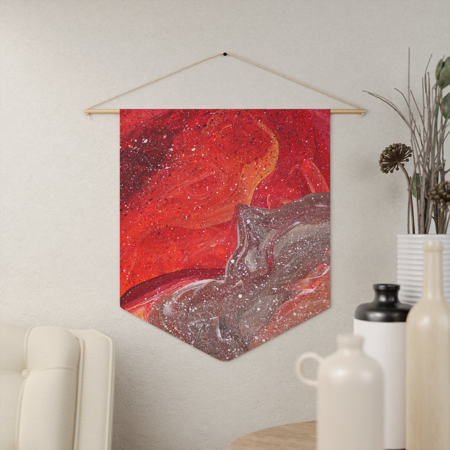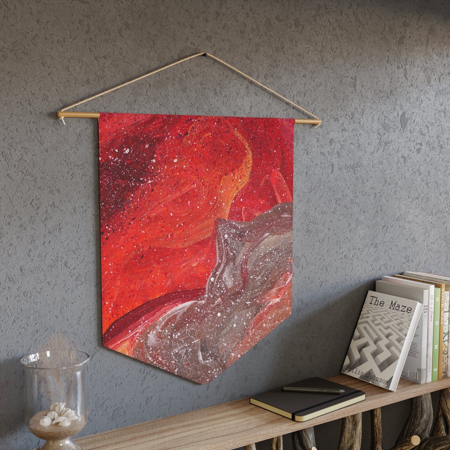 Each tapestry comes with a wooden dowel and twine frame for simple hanging, and is 18 inches wide by 21 inches long. These are lightweight and long-lasting poly-twill tapestries, each featuring unique and vibrant artwork.